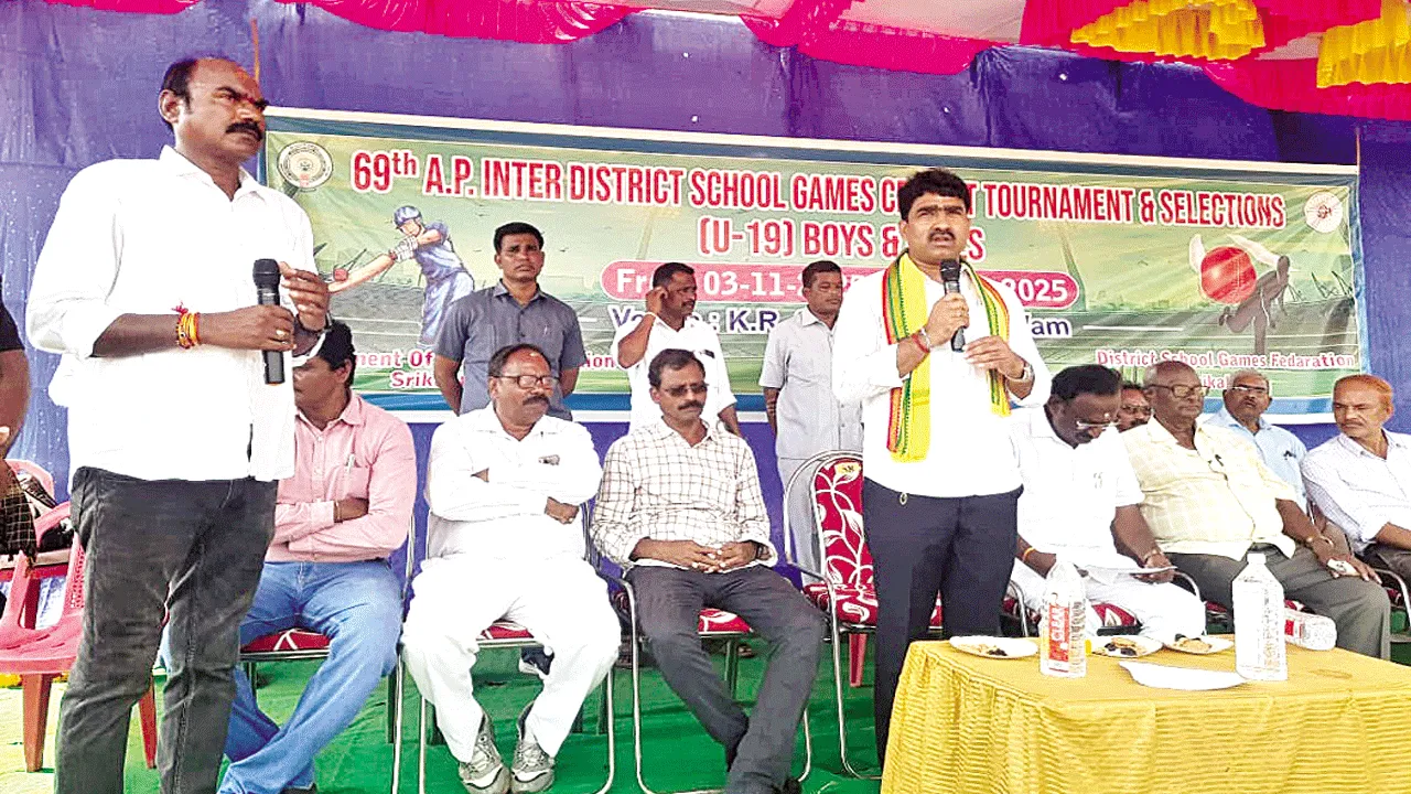 శ్రీకాకుళం స్పోర్ట్స్, నవంబరు 3(ఆంధ్రజ్యోతి): క్రీడాకారు లంతా క్రీడా స్ఫూర్తిని ప్రదర్శించి రాణించాలని శ్రీకాకుళం ఎమ్మెల్యే గొండు శంకర్ అన్నారు. స్థానిక కోడిరామ్మూర్తి స్టేడి యంలో స్కూల్గేమ్స్ ఫెడరేషన్ అండర్-19 రాష్ట్రస్థాయి క్రికెట్ టోర్నమెంట్ను సోమవారం ఆయన క్రీడా జ్యోతిని వెలిగించి బ్యాటింగ్ చేసి ప్రారంభించారు. ఈ సందర్భంగా మాట్లాడు తూ.. టోర్నమెంట్లో మంచి ప్రతిభను కనబరిచి జాతీయ, అంతర్జా తీయస్థాయికి ఎదిగాలని కోరారు. కొన్ని ప్రత్యేక పరి స్థితుల్లో స్టేడియం పనులు నిలిచిపోయాయని, వీలైనంత వేగంగా పూర్తిచేసి క్రీడా కారులకు అందుబాటులోకి తీసుకు వస్తామన్నారు. ఉపాధ్యాయ ఎమ్మెల్సీ గాదె శ్రీని వాసులు నాయుడు మాట్లాడుతూ.. ప్రభుత్వ పరంగా క్రీడల నిర్వహ ణకు అవసరమైన ప్రోత్సాహాన్ని ఇచ్చేందుకు కృషి చేస్తామ న్నారు. క్రీడాకారులతో ప్రతిజ్ఞ చేయించారు. కార్యక్రమంలో డీవీఈవో విజయ్ కుమార్, జిల్లా ఒలింపిక్ సంఘం సలహ దారు పి.సుందరరావు, కార్యదర్శి ఎం. సాంబమూర్తి, ఎస్జీఎఫ్ కార్యదర్శులు బీవీ రమణ, స్వాతి, పీఈటీల సంఘం జిల్లా అధ్యక్ష, కార్యదర్శులు పి.తవిటయ్య, ఎంవీ రమణ, కోశాధి కారి కె.మాధవరావు, గ్రిగ్స్ కార్యదర్శి శ్రీనివాసరావు పాల్గొన్నారు.