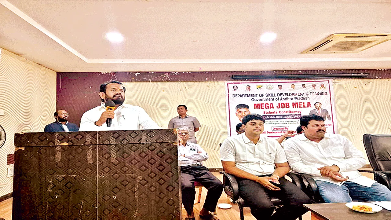 ఎచ్చెర్ల, డిసెంబరు 30(ఆంధ్రజ్యోతి): నిరుద్యోగ యువతకు ఉపాధి కల్పనే ధ్యేయంగా కూటమి ప్రభు త్వం పనిచేస్తోందని ఎమ్మె ల్యే నడుకుదిటి ఈశ్వరరావు తెలిపారు. మంగళవారం ఎచ్చెర్లలో ఏపీఎస్ఎస్డీసీ ఆధ్వర్యంలో నిర్వహించిన జాబ్మేళాలో 14 సంస్థలు పాల్గొనగా, 311 మందికి ని యామకపత్రాలు అందజేశా రు. కార్యక్రమంలో డీసీఎంఎస్ ఛైర్మన్ చౌదరి అవినాష్, జిల్లా ఉపాధి కల్పనాధికారి కె.సుధ, జిల్లా నైపుణ్యాభివృద్ధి అధికారి ఉరిటి సాయికు మార్, ఎన్వైకే డిప్యూటీ డైరెక్టర్ ఉజ్వల్, సెట్శ్రీ సీఈవో అప్పలనా యుడు, జిల్లా టూరిజం అధికారి నారాయణరావు, బుడుమూరు శ్రీరా మ్మూర్తి, ఎస్సీవీ రమణమూర్తినాయుడు పాల్గొన్నారు.