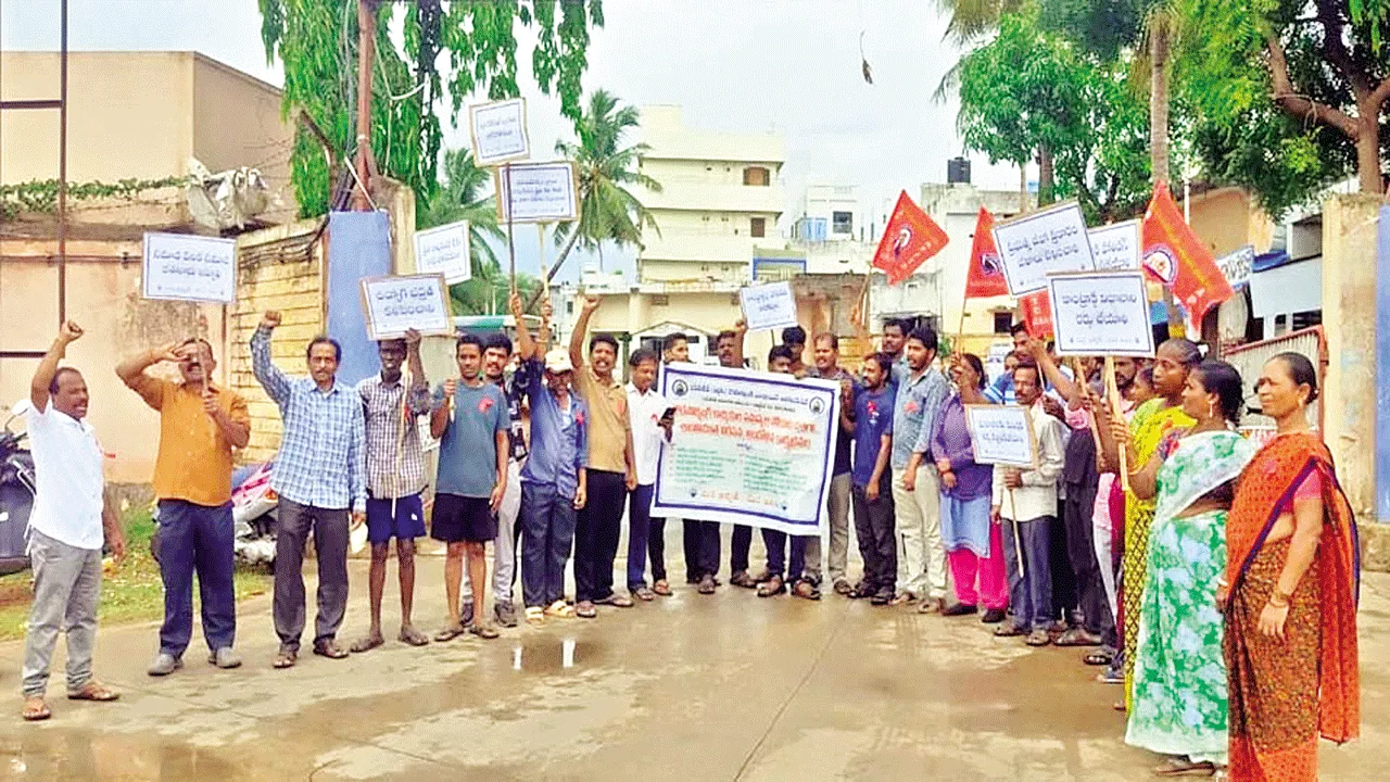 అరసవల్లి, జూన్ 23(ఆంధ్రజ్యోతి): ఆర్టీసీ ఔట్ సోర్సింగ్ ఉద్యోగుల సమస్యలు పరిష్కరిం చాలని ఆ అసోసియేషన్ ప్రతినిధులు డిమాండ్ చేశారు. ఈ మేరకు సోమవారం స్థానిక ఆర్టీసీ కాంప్లెక్స్ వద్ద ఎంప్లాయీస్ అసోసియేషన్ ఆధ్వర్యంలో నిరసన ప్రదర్శన చేపట్టారు. అసోసియేషన్ జిల్లా అధ్యఽక్షుడు దాసరి కిరణ్ మాట్లా డుతూ.. రెండు దశాబ్దాలుగా ఆర్టీసీలో వివిధ విభాగాల్లో కార్మికులుగా 220 పనిచేస్తు న్నారని, కాంట్రాక్టరు ద్వారా జీతాలు చెల్లిస్తున్నారు. రావాల్సిన జీతాలను సకాలంలో చెల్లించకపోగా.. ఒక్కోక్కరి నుంచి రూ.2000 నుంచి రూ.3000 వరకు కాంట్రాక్టర్లు దోచుకుంటున్నారని ఆరోపించారు. వేతనాలన నేరుగా కార్పొరేషన్ ద్వారా ప్రతీనెలా 10వ తేదీలోగా చెల్లించాలని డిమాండ్ చేశారు. కార్యక్రమంలో అసోసియేషన్ కోశాధి కారి నవీన్కుమార్, పెద్ద ఎత్తున కార్మికులు పాల్గొన్నారు. అలాగే టెక్కలి ఆర్టీసీ గ్యారే జ్, పలాస డిపో ఎదుట ధర్నా నిర్వహించారు. టెక్కలి కార్యదర్శి పి.రాజా, ఎంప్లాయస్ యూనియన్ నాయకుడు ఎ.దిలీప్కుమార్, ఔట్సోర్సింగ్ ఉద్యోగుల సంఘం అధ్య క్షుడు ముత్యాల రావు, కిరణ్కుమార్, కార్యదర్శి సంతోష్, బి.గోపి, పి.దివాకర్, కృష్ణ, శ్రీను, శంకర్, రాజేష్, లక్ష్మి తదితరులు పాల్గొన్నారు.