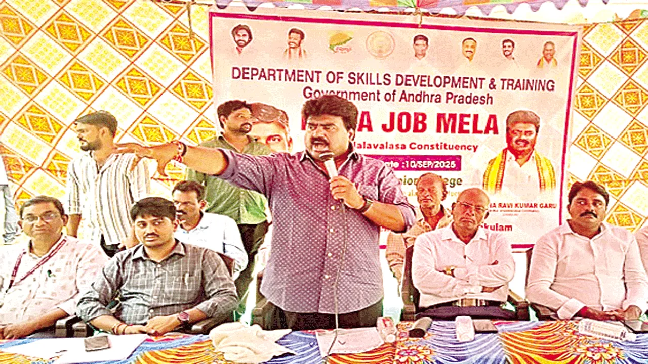 ఆమదాలవలస, సెప్టెంబరు 10 (ఆంధ్రజ్యోతి): రాష్ట్రంలో కూటమి ప్రభుత్వ ఐదేళ్ల పాలనలో ప్రభుత్వ, ప్రైవేటు రంగాల్లో 20 లక్ష ల ఉద్యోగాలు కల్పనే ముఖ్యమంత్రి నారా చంద్రబాబునాయుడు లక్ష్యంగా పనిచేసున్నా రని ఎమ్మెల్యే, రాష్ట్ర పీయూసీ చైర్మన్ కూన రవి కుమార్ అన్నారు. బుధవారం స్థానిక ప్రభుత్వ జూనియర్ కళాశాలలో జిల్లా స్కిల్ డెవలప్ మెంట్ ఆధ్వర్యంలో మెగా జాబ్మేళా నిర్వ హించారు. ఈ సందర్భంగా ఆయన మాట్లా డుతూ.. నియోజకవర్గంలో యువత పరిశ్రమల స్థాపనకు సహకరిస్తే ఐదేళ్లలో పరిశ్రమల హబ్గా మార్చి ఉపాధి అవకాశాలు కల్పిస్తాన న్నారు. సూపర్ క్రిటికల్ థర్మల్ పవర్ ప్లాంట్తో పాటు పొందూరు మండలంలో పరిశ్రమల స్థాపనకు చర్యలు చేపట్టడం జరిగిందన్నారు. ఫ్యూయల్ యూనివర్సిటీ ఏర్పాటు ప్రయత్నాలు జరుగుతున్నాయన్నారు. జాబ్మేళాలో ఎంపికైన పలువురు యువతీ యువకులకు నియామక పత్రాలు అందించారు. కార్యక్రమంలో సెట్శ్రీ సీఈవో అప్పలనాయుడు, స్కిల్ డెవలప్మెంట్ జిల్లా మేనేజర్ సాయికుమార్, మునిసి పల్ మాజీ చైర్పర్సన్ తమ్మినేని గీతా విద్యా సాగర్, రాష్ట్ర కళింగ వైశ్య కార్పొరేషన్ చైర్మన్ మొదల వలస రమేష్, పలువురు టీడీపీ నాయకులు పాల్గొన్నారు.