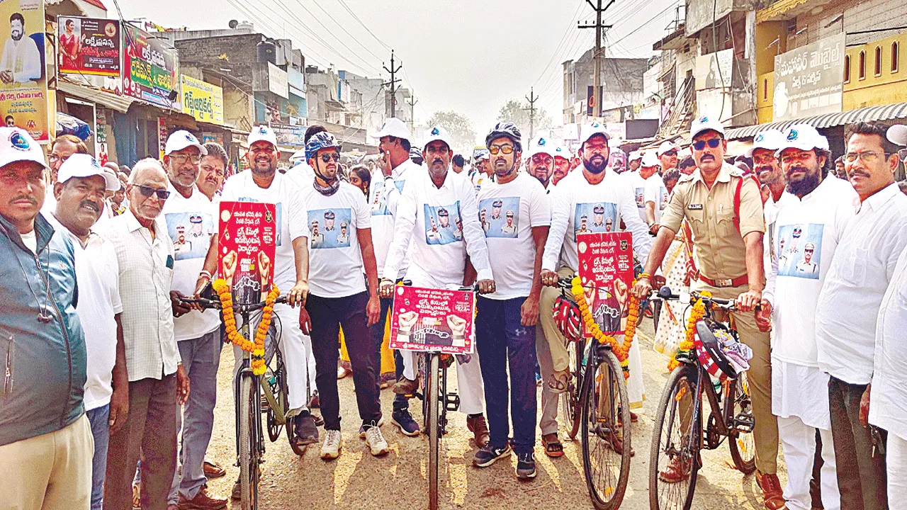 వజ్రపుకొత్తూరు, డిసెంబరు 26 (ఆంధ్రజ్యోతి): డ్రగ్స్ లేని సమాజ నిర్మాణానికి అందరూ చేయూత అందించాలని ఏపీటీపీసీ చైర్మన్ వజ్జ బాబూరావు అన్నారు. మత్తు పదార్థాలకు వ్యతిరేకంగా నిర్వహిస్తున్న అభ్యుదయం సైకిల్ యాత్ర శుక్రవారం వజ్రపుకొత్తూరు మండలం పూండి నుంచి ప్రారంభమైంది. స్థానిక ప్రైవేటు కళాశాల ప్రాంగణంలో ఎస్ఐ నిహార్ ఆధ్వర్యంలో వివిధ కళాశాలలు, పాఠశాలల విద్యార్థులతో సమావేశం నిర్వహించారు. ఈ సందర్భంగా వజ్జ బాబూరావు మాట్లాడుతూ మత్తు పదార్థాలకు యువత దూరంగా ఉండి భవిష్యత్తుకు బంగారు బాటలు వేసుకోవాలని హితవు పలికారు. సైకిల్ యాత్ర చేస్తున్న 25 మంది యువకులను ఘనంగా సత్కరించారు. డ్రగ్స్కు వ్యతిరేకంగా నినాదాలు చేసి కరపత్రాలను విడుదల చేశారు. అనంతరం పూండిలో విద్యార్థులతో కలసి భారీ ర్యాలీ నిర్వహించి.. మానవహారం చేపట్టారు. డోకులపాడు చిన్నారులు ప్రదర్శించిన కోలాటం, తప్పెటగుళ్లు ఆకట్టుకున్నాయి. ఈ కార్యక్రమంలో జిల్లా గ్రంథాలయ సంస్థ చైర్మన్ పీరుకట్ల విఠల్రావు, కాశీబుగ్గ రూరల్ సీఐ తిరుపతిరావు, డాక్టర్ లీల, నాయకులు కర్ని రమణ, పోతనపల్లి సాంబమూర్తి, గోవింద పాపారావు, అగ్నికుల క్షత్రియ కార్పొరేషన్ డైరెక్టర్ పుచ్చ ఈశ్వరరావు, తెలుగు యువత రాష్ట్ర ఉపాధ్యక్షులు శశిభూషణ్, ఏఎంసీ చైర్మన్ మల్లా శ్రీనివాసరావు తదితరులు పాల్గొన్నారు.