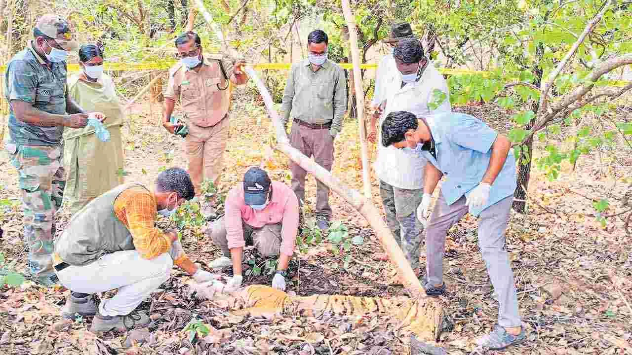 ఆత్మకూరు, మే 1(ఆంధ్రజ్యోతి): నంద్యాల జిల్లాలోని ఆత్మకూరు ప్రాజెక్ట్ టైగర్ పరిధిలో పెద్దపులి అనుమానాస్పదంగా మృతి చెందిన ఘటన గురువారం వెలుగు చూసింది. ఆత్మకూరు ప్రాజెక్ట్ టైగర్ డిప్యూటీ డైరెక్టర్ వి.సాయిబాబా తెలిపిన వివరాల మేరకు.. కొత్తపల్లి మండలంలోని ముసలిమడుగు సెక్షన్, గుమ్మడాపురం బీట్ పరిధిలోని దేవరసెల వద్ద ఓ పెద్దపులి కళేబరాన్ని టైగర్ ట్రాకర్స్ గుర్తించారు. ఈ విషయాన్ని అధికారులకు తెలియజేయడంతో వారు అటవీ జాగిలాలతో ఘటనా స్థలానికి చేరుకున్నారు. సుమారు 20 రోజుల క్రితమే పెద్దపులి మృతి చెందినట్టు ప్రాథమికంగా అంచనా వేశారు. ఎన్ఎ్సటీఆ్ఫ వైల్డ్లైఫ్ వెటర్నరీ డాక్టర్ ఆర్ఎన్.వెస్లీ, జుబేర్వలి అక్కడికి చేరుకుని పోస్టుమార్టం నిర్వహించారు. ముఖ్యమైన అవయవాల శాంపిల్స్ను హైదరాబాద్లోని సెంటర్ ఫర్ సెల్యులార్ అండ్ మాలిక్యులర్ బయాలజీ (సీసీఎంబీ) ల్యాబ్కు పంపించారు. అనంతరం దేవరసెల సమీపంలోనే పెద్దపులి కళేబరాన్ని దహనం చేశారు. మరణించిన పెద్దపులి వయస్సు సుమారు 4-5 ఏళ్ల వరకు ఉంటుందని అటవీ అధికారులు భావిస్తున్నారు. ఈ ఘటనపై నేషనల్ టైగర్ కన్జర్వేషన్ ఆఫ్ అథారిటీ (ఎన్టీసీఏ)కి సమాచారం ఇవ్వడంతో పులి మృతికి గల కారణాలపై ప్రాథమిక నివేదికను కోరినట్టు తెలిసింది.