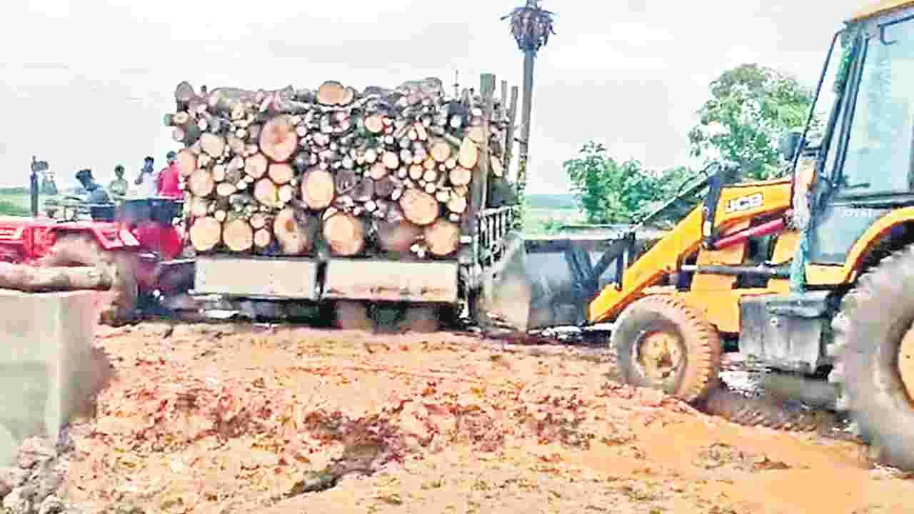 జీలుగుమిల్లి, ఆగస్టు 3(ఆంధ్రజ్యోతి): ఏలూరు జిల్లా జీలుగుమిల్లి మండలం స్వర్ణవారిగూడెం సమీపంలో ఇటీవల రహదారి నిర్మాణ పనుల్లో భాగంగా కల్వర్టును నిర్మించారు. పక్కా రోడ్డు పూర్తికాలేదు. తాజా వర్షాలకు ఆ ప్రాంతమంతా పూర్తిగా బురదమయమైంది. వాహనాలు కూరుకుపోతున్నాయి. బుధవారం ఇలా కట్టెల లోడుతో వచ్చిన ట్రాక్టరు బురదలో కూరుకుపోగా, రెండు జేసీబీల సాయంతో బయటికి తీశారు. ఇంతలో మరో మినీ వాహనం బురదలో కూరుకుపోయి చక్రాలు దిగబడ్డాయి. ట్రాక్టరుకు కట్టి బయటకు లాగారు. బస్సుల రాకపోకలకు వీల్లేకపోవడంతో.. తల్లిదండ్రులే తమ పిల్లలను ఎలాగోలా జంగారెడ్డిగూడెం స్కూళ్లకు తీసుకెళ్లారు.