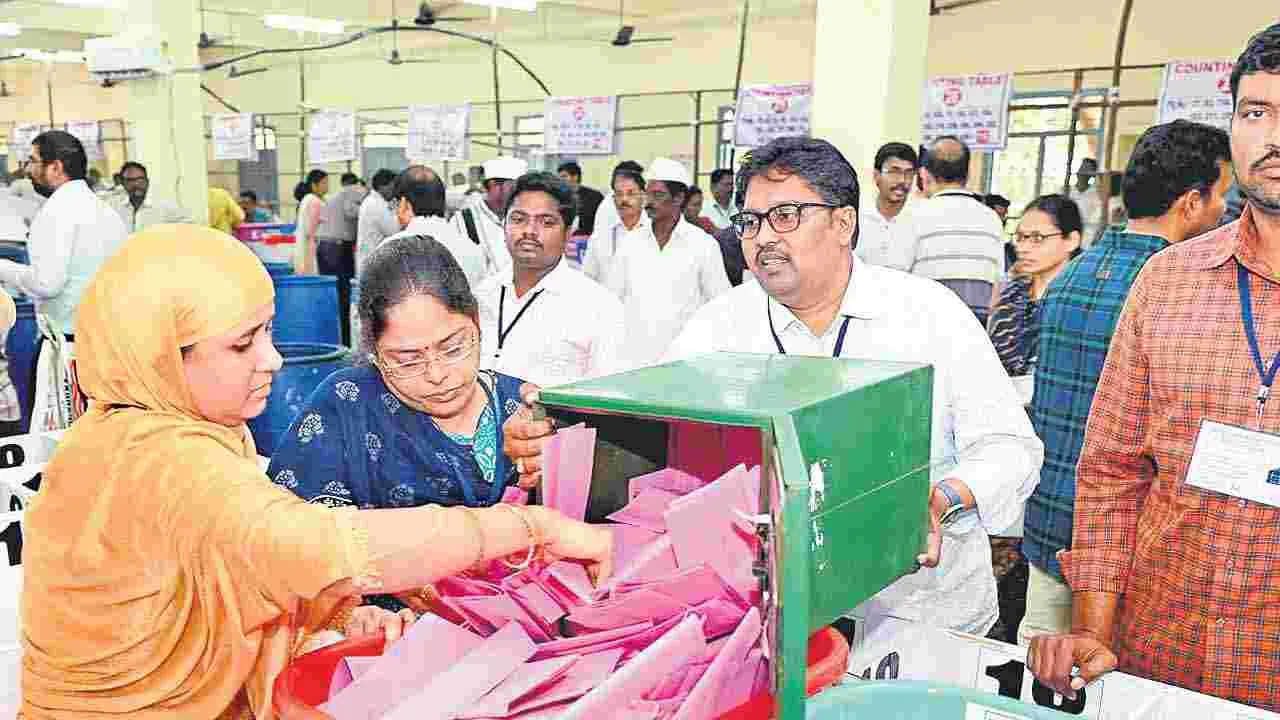 ఉత్తరాంధ్ర ఉపాధ్యాయ ఎమ్మెల్సీగా పీఆర్టీయూ అభ్యర్థి గాదె శ్రీనివాసులు నాయుడు విజయం సాధించారు. ఆయన రెండో ప్రాధాన్య ఓట్లతో గెలుపొందారు. గత నెల 27న జరిగిన పోలింగ్లో 20,794 ఓట్లు పోలవ్వగా.. అందులో 659 చెల్లనవిగా గుర్తించారు. మిగిలిన 20,135 ఓట్లలో 50 శాతం కంటే ఒక ఓటు అదనంగా సాధించిన వారిని విజేతగా ప్రకటించాల్సి ఉంటుంది. అంటే 10,068 ఓట్లు రావాలి. అయితే తొలి ప్రాధాన్య ఓట్లలో శ్రీనివాసులు నాయుడికి 7,210, ఏపీటీఎఫ్ అభ్యర్థి పాకలపాటి రఘువర్మకు 6,845, యూటీఎఫ్ అభ్యర్థి కోరెడ్ల విజయగౌరికి 5,804 ఓట్లు లభించాయి. పోటీలో ఉన్న మిగిలిన ఏడుగురు అభ్యర్థులకు వంద కంటే తక్కువ ఓట్లు వచ్చాయి. రెండో ప్రాధాన్య ఓట్లను లెక్కించగా.. శ్రీనివాసులునాయుడికి 9,237 ఓట్లు, వర్మకు 8,527 ఓట్లు లభించాయి. ఇంకా శ్రీనివాసులునాయుడి ఎన్నికకు 831ఓట్లు అవసరమయ్యాయి. దీంతో రెండో స్థానంలో నిలిచిన రఘువర్మకు లభించిన ఓట్ల నుంచి రెండో ప్రాధాన్య ఓట్లను లెక్కించారు. దీంతో మ్యాజిక్ ఫిగర్కు అవసరమైన 10,068 ఓట్లు రావడంతో శ్రీనివాసులునాయుడిని విజేతగా ప్రకటించారు. ఉమ్మడి కృష్ణా-గుంటూరు జిల్లాల పట్టభద్రుల ఎమ్మెల్సీ స్థానానికి జరిగిన ఎన్నికల్లో కూటమి అభ్యర్థి ఆలపాటి రాజేంద్రప్రసాద్ భారీ మెజారిటీ దిశగా దూసుకెళ్తున్నారు. గత నెల 27న జరిగిన పోలింగ్లో 2,41,493 ఓట్లు పోలయ్యాయి. కౌంటింగులో నాలుగు రౌండ్లు ముగిసేటప్పటికి సమీప ప్రత్యర్థి పీడీఎఫ్ అభ్యర్థి కేఎస్ లక్ష్మణరావుపై ఆలపాటి రాజేంద్రప్రసాద్ 38,491 ఓట్ల ఆధిక్యం సంపాదించారు. అన్ని రౌండ్లు పూర్తయ్యేసరికి మెజారిటీ లక్షకుపైగా చేరుకుంటుందని అంచనా వేస్తున్నారు. గోదావరి జిల్లాల పట్టభద్రుల ఎన్నికల్లో టీడీపీ కూటమి అభ్యర్థి పేరాబత్తుల రాజశేఖరం ముందంజలో ఉన్నారు. సోమవారం అర్ధరాత్రి తొలి రౌండ్ పూర్తయ్యేసరికి ఆయన తన సమీప పీడీఎఫ్ అభ్యర్థి దిడ్ల రాఘవులుపై 10,705ఓట్ల ఆధిక్యంతో కొనసాగుతున్నారు. పేరాబత్తులకు 16,520ఓట్లు రాగా.. రాఘవులు5,815ఓట్లు పొందారు. మంగళవారం సాయంత్రం వరకు లెక్కింపు కొనసాగనుంది.