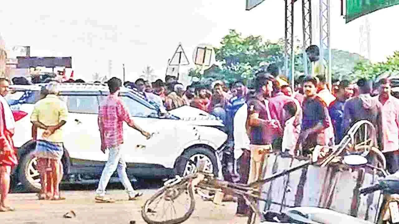 Road Accident: టైరు పేలి.. జనంపైకి పెళ్లి కారు.. ముగ్గురు మృతి