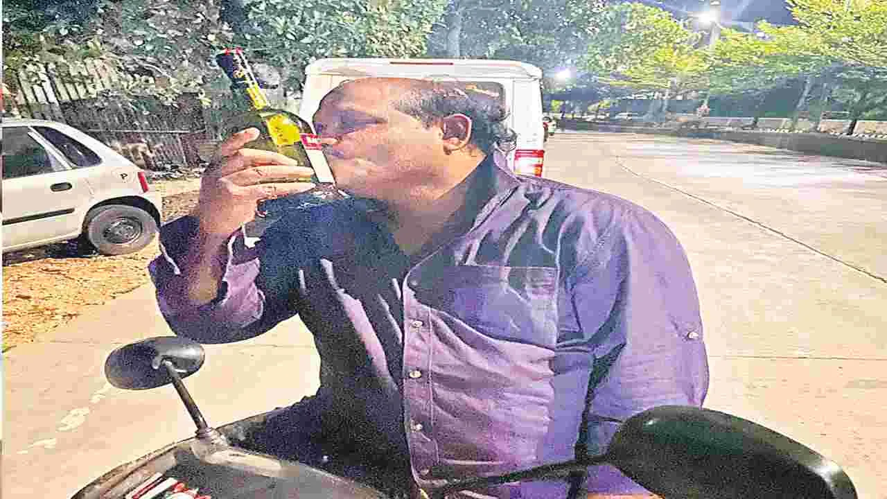 తిరుమల, ఆగస్టు 10 (ఆంధ్రజ్యోతి): తిరుమల పవిత్రతను దెబ్బతీసేలా ఓ వైసీపీ నేత మద్యం బాటిల్తో హల్చల్ చేసిన ఫొటోలు ప్రస్తుతం సోషల్ మీడియాలో వైరల్ అవుతున్నాయి. సాధారణంగా తిరుమలకు మద్యం తాగి రావడం, మద్యం తీసుకురావడం నిషేధం. అయితే తిరుమలకు చెందిన భీమవరపు నాగరాజురెడ్డి అనే వైసీపీ నేత బాలాజీనగర్ సమీపంలోని రింగురోడ్డులో మద్యం బాటిల్ చేతపట్టుకుని ముద్దాడుతున్న ఫొటోలు సోషల్ మీడియాలో చక్కర్లు కొడుతున్నాయి. నాగరాజురెడ్డి గత ఎన్నికల సమయంలో పోలింగ్ బూత్ల వద్ద నిబంధనలకు వ్యతిరేకంగా వైసీపీ ఎమ్మెల్యే అభ్యర్థి అభినయ్రెడ్డికి ఓట్లు వేయాలని ప్రచారం చేయడం విమర్శలకు దారితీసింది. తిరుమలలో తట్టల దందా చేశాడనే ఆరోపణలు కూడా ఆయన ఉన్నాయి. అలాగే చిట్టీ, వడ్డీ వ్యాపారంతో స్థానిక వ్యాపారులను దోచుకున్నాడనే ఫిర్యాదులు కూడా అధికంగా ఉన్నాయి. ఇటీవల నాగరాజు వేధించాడంటూ హరీ్షరెడ్డి అనే వ్యక్తి ఎస్పీకి ఫిర్యాదు చేశారు. తాజాగా మద్యం బాటిల్తో ఉన్న ఫొటోలు వెలుగులోకి రావడంతో నాగరాజు మరోసారి వార్తల్లో నిలిచాడు. అయితే ఈ ఫొటోలు ఎప్పటివి అనే దానిపై స్పష్టత రావాల్సి ఉంది. ఫొటోలు ఎప్పటివైనా తిరుమల పవిత్రతను దెబ్బతీసేలా రోడ్డుపైనే మద్యం బాటిల్ పట్టుకుని ఉండటంపై టీటీడీ ఎలా స్పందిస్తుందో చూడాలి.