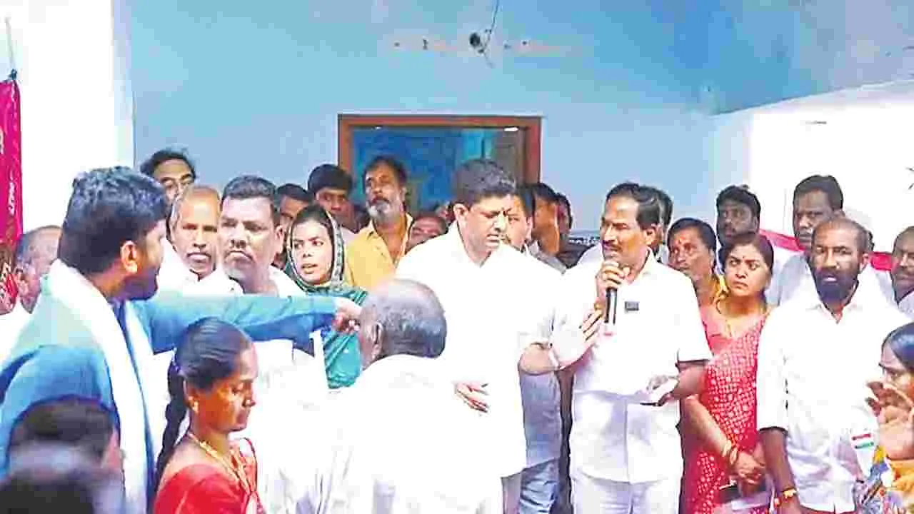 గుంటూరు(తూర్పు), అక్టోబరు 12(ఆంధ్రజ్యోతి): గుంటూరు జిల్లా ప్రత్తిపాడు ఎమ్మె ల్యే, మాజీ ఐఏఎస్ అధికారి బూర్ల రామాంజనేయులును మాల మహానాడు జాతీయ అ ధ్యక్షుడు గోళ్ల అరుణ్ కుమార్ అసభ్య పదజాలంతో దూషించారు. తురకపాలెంలో వరుస మరణాల నేపథ్యంలో ఆదివారం ఆయా కు టుంబాలకు చెక్కుల పంపిణీ కార్యక్రమంలో ఈ ఘటన జరిగింది. ఒక్కొక్కరికి రూ.5 లక్ష ల చొప్పున మొత్తం 28మందికి కేంద్ర మంత్రి పెమ్మసాని చంద్రశేఖర్ సమక్షంలో బాధితులకు ఎమ్మెల్యే చెక్కులు పంపిణీచేశారు. ఈ సాయం ప్రభుత్వం చేస్తోందని, దళారులు డబ్బులు అడిగితే ఇవ్వద్దని సూచించారు. ఆ సమయంలో అక్కడే ఉన్న అరుణ్ కుమార్ ఎమ్మెల్యేను చూస్తూ అంత దౌర్భాగ్యం తమకు రాలేదన్నారు. ఒక సమయంలో నియంత్రణ కోల్పోయి ఎమ్మెల్యే వైపు వేలు చూపిస్తూ ‘ఎవడ్రా నువ్వు.. యూజ్ లెస్ ఫెలో’ అంటూ దూషించడంతో పాటు తిట్లపర్వం అందుకున్నారు. ఈ ఘటనతో కేంద్ర మంత్రి, అధికారులు షాకయ్యారు. ఎమ్మెల్యే మీదకు దూసుకువచ్చిన అరుణ్కుమార్ను పోలీసులు తీ సుకువెళ్లి పోయారు. ఎమ్మెల్యేపై అనుచిత వ్యాఖ్యలు చేసిన మాలమహానాడు నాయకులను గ్రామస్థులు అడ్డుకున్నారు. మా ఊళ్లో మీ పెత్తనం ఏమిటని నిలదీశారు. కాగా, కొందరు బాధితులు తమకూ ఆర్థిక సాయం ప్రకటించాలని కోరారు.