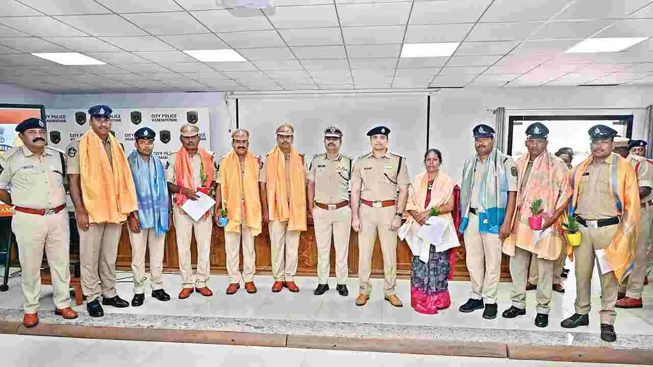 విశాఖపట్నం, ఆగస్టు 23 (ఆంధ్రజ్యోతి): నగర పోలీస్ కమిషనరేట్లో పలు విభాగాల్లో వివిధ హోదాల్లో పనిచేస్తున్న 29 మందికి పదోన్నతి కల్పిస్తూ సీపీ శంఖబ్రత బాగ్చి శనివారం ఉత్తర్వులు జారీ చేశారు. కానిస్టేబుళ్లుగా పనిచేస్తున్న 14 మందికి హెడ్ కానిస్టేబుళ్లుగా, హెచ్సీలుగా పనిచేస్తున్న 13 మందికి ఏఎస్ఐలుగా, ఇద్దరు జూనియర్ అసిస్టెంట్లకు సీనియర్ అసిస్టెంట్లుగా పదోన్నతి లభించింది. కమిషనరేట్లోని సమావేశ మందిరంలో ఏర్పాటు చేసిన కార్యక్రమంలో వారందరికీ సీపీ సత్కరించి, పదోన్నతి ఉత్తర్వులను అందజేశారు.
