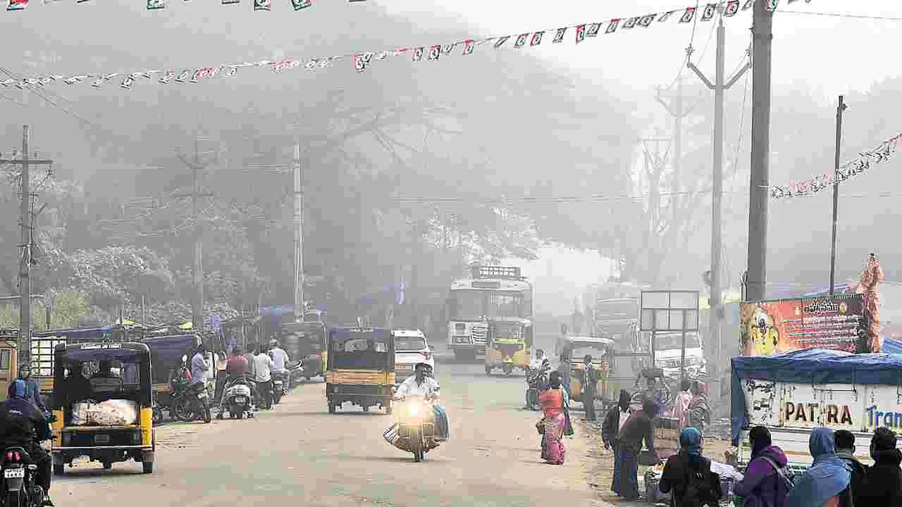 వాతావరణంలోని మార్పులతో మన్యంలో శనివారం ఉదయం పొగమంచు దట్టంగా కమ్మేసింది.