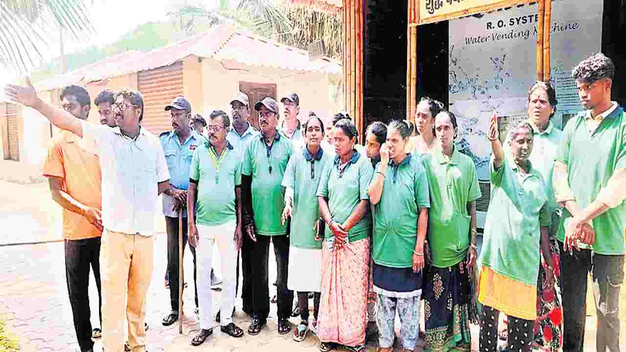 సాగర్నగర్, ఫిబ్రవరి 15 (ఆంధ్రజ్యోతి): జీతాలు చెల్లించాలంటూ ఆంధ్రప్రదేశ్ పర్యాటకాభివృద్ధి సంస్థ ఆధ్వర్యంలో రుషికొండలో పనిచేస్తున్న కాంట్రాక్టు కార్మికులు శనివారం నిరసన చేపట్టారు. రుషికొండ బీచ్లో పరిచేసే పారిశుధ్య కార్మికులు, లైఫ్ గార్డులు, సెక్యూరిటీ గార్డులతో పాటు వివిధ పనులు చేసే 38 మంది కార్మికులు ఆందోళనకు దిగారు. నవంబరు నెల నుంచి జాతాలు చెల్లించకపోవడంతో తాము ఆర్థికంగా తీవ్ర ఇబ్బందులకు గురవుతున్నామని ఆవేదన వ్యక్తం చేశారు. అనంతరం వారు బ్లూ ఫ్లాగ్ బీచ్ మేనేజర్ సతీశ్కు వినతిపత్రాన్ని అందజేసారు. ఈ సమస్యను ఉన్నతాధికారుల దృష్టికి తీసుకువెళ్లి రెండు మూడు రోజుల్లో జీతాలు అందేలా చూస్తానని ఆయన హామీ ఇచ్చారు.