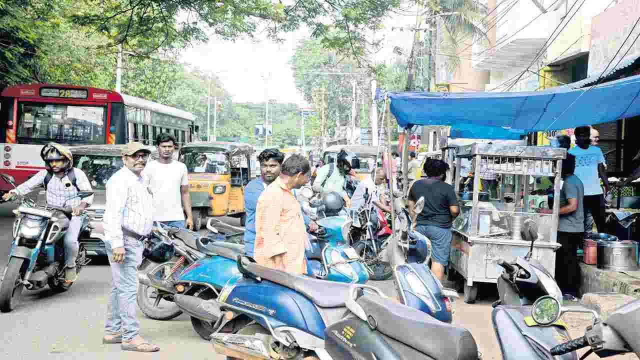 రోడ్డు మార్జిన్లు, ఫుట్పాత్లు ఆక్రమించి ఏర్పాటుచేసిన దుకాణాల తొలగింపునకు నడుంబిగించిన జీవీఎంసీ
