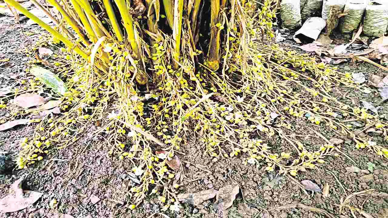 చింతపల్లి, ఆగస్టు 24 (ఆంధ్రజ్యోతి): మండలంలోని గొందిపాకలు పంచాయతీ యర్రవరం గ్రామంలో ఓ గిరిజన రైతు పెరట్లో యాలకులు విరగ్గాశాయి. సుమారు 20 ఏళ్ల క్రితం చింతపల్లి ఉద్యాన పరిశోధన స్థానం శాస్త్రవేత్తలు యాలకులపై పరిశోధనలు నిర్వహించి గిరిజన ప్రాంతం సాగుకు అనుకూలమని నిర్ధారించారు. ఉద్యాన పరిశోధన స్థానంలో శాస్త్రవేత్తలు యాలకుల మొక్కలను కొన్నేళ్లుగా సాగు చేస్తున్నారు. యర్రవరం గ్రామానికి చెందిన గూడెపు వేణుగోపాల్ రాజు నాలుగేళ్ల క్రితం ఉద్యాన పరిశోధన స్థానంలో జరిగిన శిక్షణ కార్యక్రమానికి హాజరయ్యారు. యాలకుల సాగుకు గిరిజన ప్రాంతం అనుకూలమని శాస్త్రవేత్తలు చెప్పడంతో కొన్ని మొక్కలను బెంగళూరు నుంచి దిగుమతి చేసుకుని పెరట్లో నాట్లు వేశారు. గత ఏడాది నుంచి కొన్ని మొక్కలు కాపుకొచ్చాయి. ప్రస్తుతం సీజన్ కావడంతో యాలకుల దిగుబడులు వచ్చాయి. సాధారణం మూడేళ్ల తరువాత 100 గ్రాముల నుంచి 200 గ్రామాల దిగుబడులు వస్తాయి. అయితే వేణుగోపాల్ రాజు పెరట్లో సాగు చేస్తున్న మొక్కల్లో ఈ ఏడాది ఒక్కొక్కటి సుమారు 500 గ్రాములకు పైగా యాలకులు రావడంతో ఆయన సంతోషం వ్యక్తం చేస్తున్నారు.
