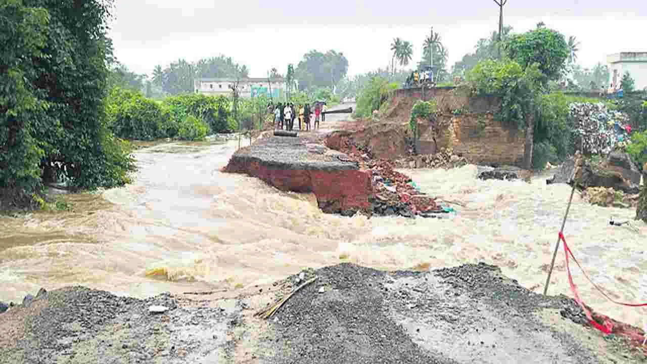 విజయరామరాజుపేట వద్ద వరద ఉధృతికి కొట్టుకుపోయిన డైవర్షన్ రోడ్డు