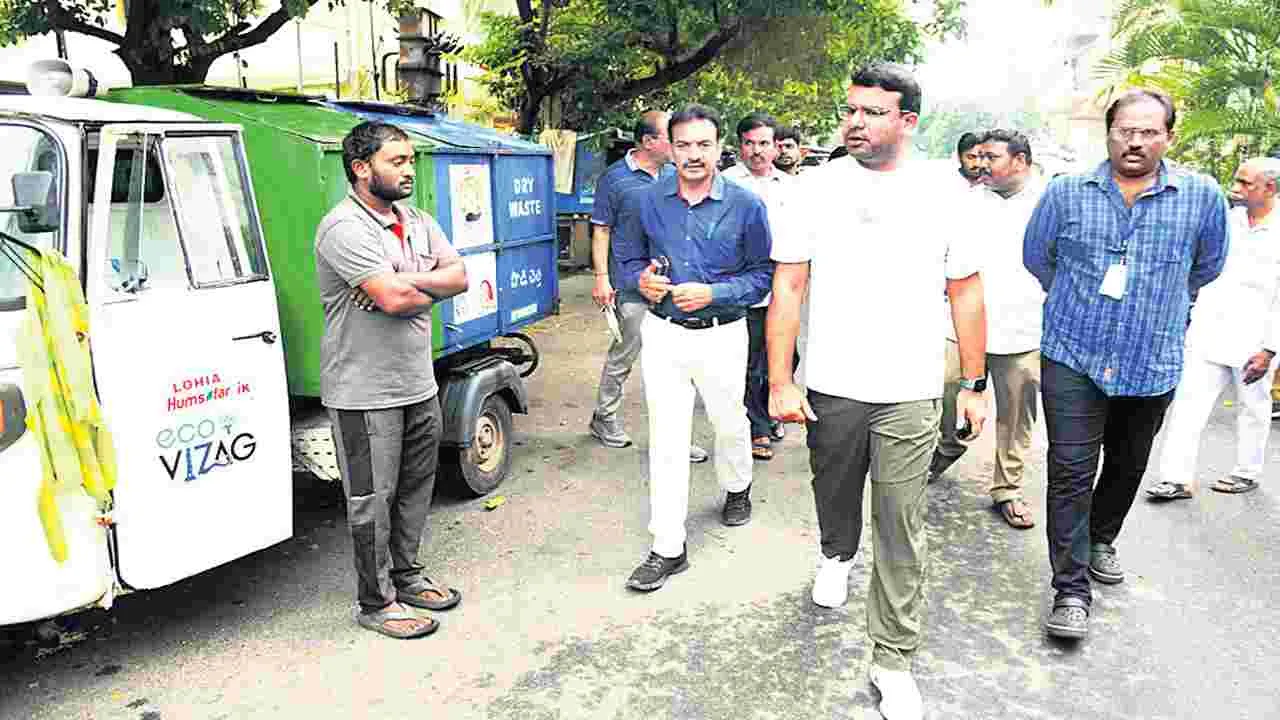 జీవీఎంసీ కమిషనర్ కేతన్గార్గ్ క్షేత్రస్థాయి పర్యటనల్లో భాగంగా ఇటీవల గాజువాక వెళ్లారు. అధికారులతో కలిసి నడుచుకుంటూ వెళుతున్న కమిషనర్కు ఒక ప్రైవేటు ఫంక్షన్ జరిగినచోట క్లాప్ వాహనం కనిపించడంతో ఆగి పరిశీలించారు. ముందురోజు రాత్రి జరిగిన ఫంక్షన్లో పోగైన చెత్తను క్లాప్ వాహనం సిబ్బంది ఏరి వాహనంలో వేస్తున్నట్టు గుర్తించి అక్కడకు వెళ్లారు. సిబ్బందిని పిలిచి ఏ వార్డు సచివాలయ పరిధిలో తిరిగే వాహనమని ప్రశ్నించారు. ఇళ్లకు వెళ్లి చెత్త సేకరించడం మానేసి, ప్రైవేటు ఫంక్షన్లో చెత్తను తరలించాల్సిన అవసరం ఏమొచ్చిందని ఆగ్రహం వ్యక్తంచేశారు. క్లాప్ వాహనాల సిబ్బంది కొందరు ఇలా చేస్తున్నారని ఆయన వెంట ఉన్న అధికారి ఒకరు చెప్పడంతో ఇకపై పర్యవేక్షించే బాధ్యతను వార్డు శానిటేషన్ కార్యదర్శులకు అప్పగించాలని అఽధికారులను ఆదేశించారు.