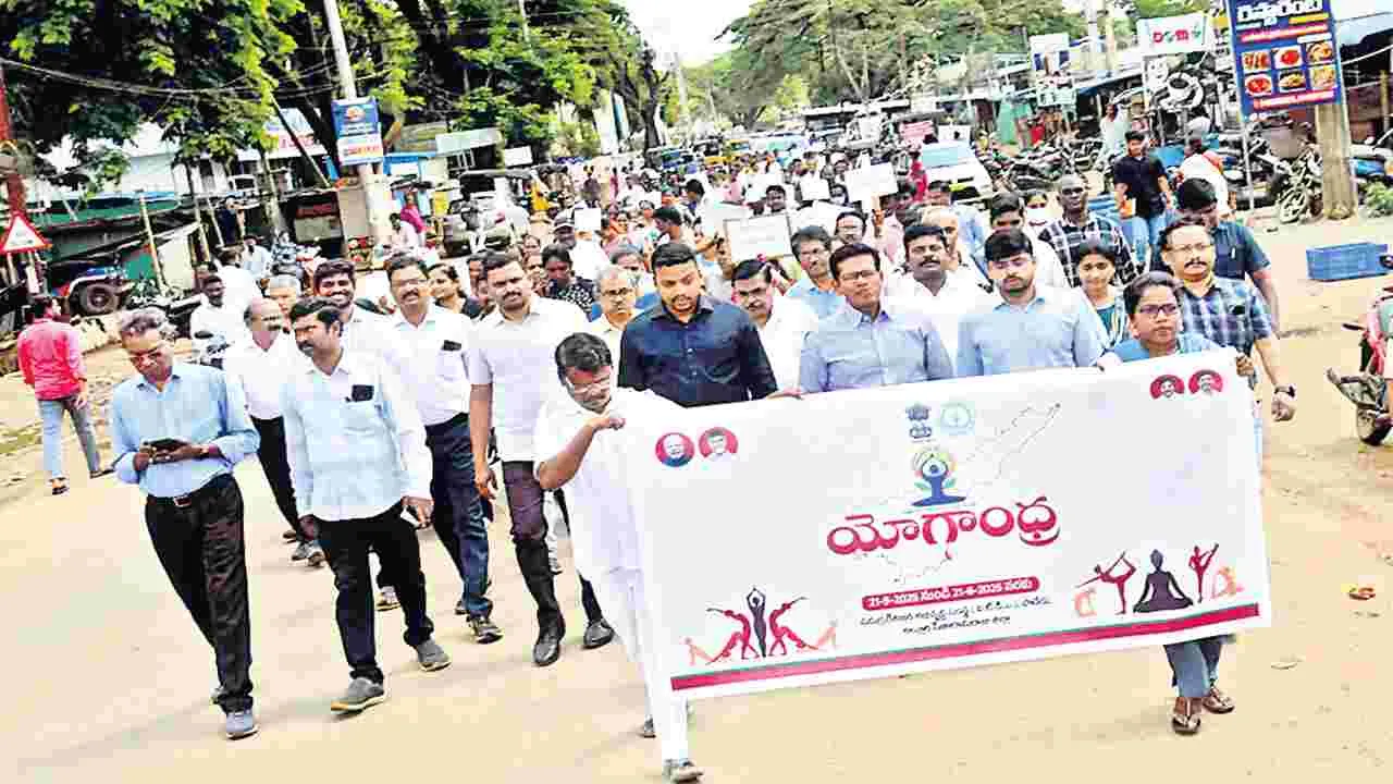 సంపూర్ణ ఆరోగ్యానికి యోగా సాధన చక్కని మార్గమని కలెక్టర్ ఏఎస్ దినేశ్కుమార్ తెలిపారు. జిల్లా కేంద్రం పాడేరులో యోగాంధ్ర ర్యాలీని మంగళవారం ఆయన జెండా ఊపి ప్రారంభించారు. ఐటీడీఏ కార్యాలయం నుంచి ర్యాలీని అంబేడ్కర్ సెంటర్ వరకు నిర్వహించారు.