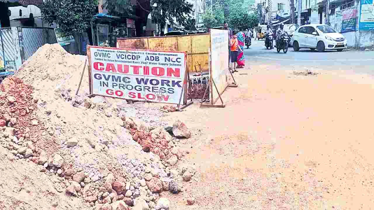 ఎన్జీజీఓస్ కాలనీ, మాధవధార, మురళీనగర్ ప్రాంతాల్లో ఇప్పటికీ చేసిన చోటే పనులు చేయడం, తవ్విన చోటే రోడ్లు తవ్వడం రివాజుగా మారింది. మాధవధార తెన్నేటినగర్ దగ్గర బ్లాక్ నంబరు 18కు అనుసంధానం చేసేందుకు ప్రత్యామ్నాయంగా రోడ్డుకు పది అడుగుల లోతున ప్రధాన లైన్లను సరిచేసే పనులు చేపడుతున్నారు. వాస్తవానికి జాతీయ రహదారుల సంస్థ ఈ పనులకు నుంచి అనుమతి లేదని, ఆర్అండ్బీ జంక్షన్ వద్ద తొలుత చేపట్టిన ప్రధాన లైన్ల అనుసంధాన పనులు మాధవధార వాటర్ ట్యాంకు రోడ్డు వైపు సీతన్న గార్డెన్స్ దగ్గరకు మళ్లించారు. ఆ తరువాత అనుమతి లభించడంతో అక్కడే పైపులను అనుసంధానించి, సీతన్నగార్డెన్స్ దగ్గర ఏర్పాటు చేసిన టి ఆకారం పైపును కాంక్రీటుతో మూసివేసే పనులు చేపడుతున్నారు. ప్రాజెక్టుకు గోపాలపట్నం, నాయుడుతోట ప్రాంతాల్లో పైపుల అమరికకు స్థల వివాదాలు ఏర్పడ్డాయి.