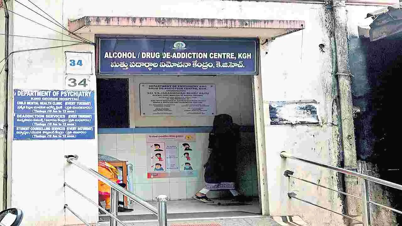 ఇటీవల మద్యం, గంజాయి, ఇతర మత్తు పదా ర్థాలకు బానిసలుగా మారుతున్న వారి సంఖ్య పెరుగు తోంది. దురలవాట్లకు బానిసలుగా మారి జీవితాలను నాశనం చేసుకుంటున్న వారికి మెరుగైన వైద్య సేవలు అందించి సాధారణ స్థితికి తీసుకురావాలన్న ఉద్దేశంతో కేజీహెచ్లో డీఅడిక్షన్ సెంటర్ను 2020లో ఏర్పాటు చేశారు. ఇక్కడ ఆశించినస్థాయిలో వైద్యసేవలు అంద డం లేదు. తప్పనిసరిగా మానసిక వైద్య నిపుణులు ఉండాలి. ఈ సెంటర్లో ఎంబీబీఎస్ చేసిన వైద్యులతో సేవలందిస్తున్నారు. సెంటర్కు వచ్చే బాధితుల ఆరోగ్య పరిస్థితిని బట్టి ఇన్పేషెంట్లుగా చేర్చుకోవాలి.ఈ కేంద్రం ఏర్పాటైనప్పటి నుంచి ఓపీ సేవలను మాత్రమే అందిస్తున్నారు. ఐపీ విభాగాన్ని పక్కన పెట్టేయడంతో ఇబ్బందులు తప్పడంలేదు. తీవ్రస్థాయిలో ఇబ్బంది పడే రోగులు పెదవాల్తేరులోని ప్రభుత్వ మానసిక ఆస్పత్రిలో చేరుతుండగా, మరికొంతమంది ప్రైవేటు ఆస్పత్రులకు ఆశ్రయిస్తున్నారు.