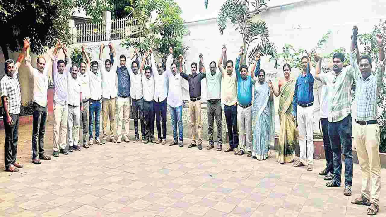 విశాఖపట్నం, మే 17 (ఆంధ్రజ్యోతి): ఉపాధ్యాయుల బదిలీలు, పదోన్నతుల్లో ఇబ్బందులను తొలగించాలని డిమాండ్ చేస్తూ ఈ నెల 21వ తేదీన జిల్లా విద్యాశాఖాధికారి కార్యాలయాన్ని ముట్టడిస్తామని జిల్లా ఉపాధ్యాయ సంఘాల ఐక్యవేదిక పిలుపునిచ్చింది. శనివారం డాబాగార్డెన్లో గల ఆర్బీఎం యూపీ పాఠశాలలో పీఆర్టీయూ జిల్లా అధ్యక్షుడు జి.గోపినాథ్ అధ్యక్షతన జరిగిన సమావేశంలో ఉపాధ్యాయ సంఘాలతో స్టీరింగ్ కమిటీ సమావేశాన్ని నిర్వహించారు. ఈ సందర్భంగా గోపినాథ్ మాట్లాడుతూ గత ప్రభుత్వం తీసుకువచ్చిన జీవో నంబర్-117తో ప్రాథమిక విద్య అస్తవ్యస్తంగా మారిందని ఆరోపించారు. దీనిని రద్దుచేస్తామని హామీతో అధికారంలోకి వచ్చిన కూటమి ప్రభుత్వం... పాఠశాల విద్యకు మరింత ప్రమాదం తెచ్చేపెట్టేలా జీవో 19, 20, 21లను తీసుకువచ్చి తొమ్మిది రకాల బడులను అమలు చేయడం అన్యాయమన్నారు. బదిలీలు, పదోన్నతులపై ఉపాధ్యాయ సంఘాలతో సమావేశాలు నిర్వహించినా వారి అభిప్రాయాలను పరిగణనలోకి తీసుకోలేదని ఆరోపించారు. దీంతో రాష్ట్రంలో అన్ని ఉపాధ్యాయ సంఘాలు ఐక్యంగా ఏర్పడి ఆందోళనకు నిర్ణయించాయన్నారు. ఇందులో భాగంగానే ఈ నెల 21న డీఈవో కార్యాలయాలు ముట్టడికి పిలుపునిచ్చాయన్నారు. ఈ కార్యక్రమానికి ప్రతి ఉపాధ్యాయుడు హాజరై విజయవంతం చేయాలని కోరారు. స్టీరింగ్ కమిటీ సభ్యులుగా ప్రధానోపాధ్యాయుల సంఘం నుంచి వీఎస్ వేణుగోపాల్తోపాటు గోపినాథ్ (పీఆర్టీయూ), ఇమంది పైడిరాజు (ఎస్టీయూ), టి.రామకృష్ణ (ఏపీటీఎఫ్- 257), జి.చిన్నబ్బాయ్ (యూటీఎఫ్), ఎ.అరుణ్కుమార్ (ఏపీయూఎస్), ఎన్.ధనుంజయరావు (ఏపీటీఎఫ్-1938), బి.చిన్నారావు (ఏపీపీటీఎ), సీహెచ్ సూర్యనారాయణ (వైఎస్సార్టీఏ)లను ఎన్నుకున్నారు.