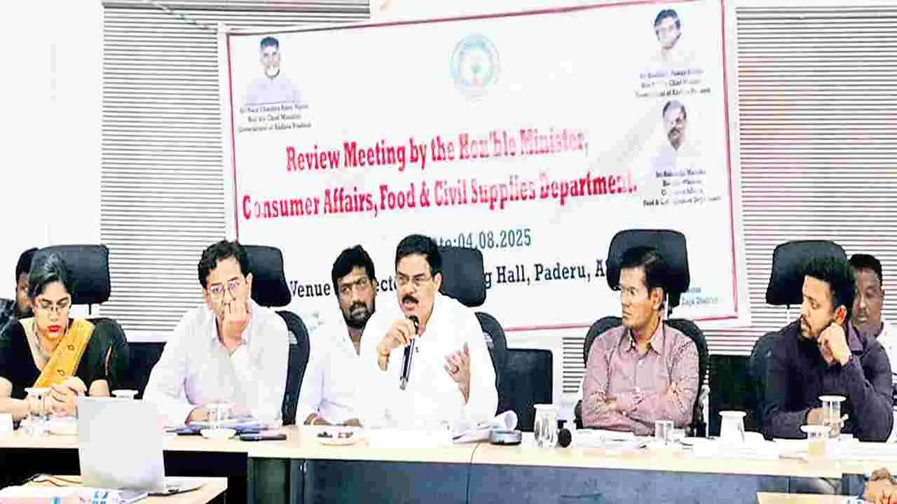 పాడేరు, ఆగస్టు 4(ఆంధ్రజ్యోతి): రాష్ట్రంలోని అర్హులకు ఈ నెల 25 నుంచి కొత్త రేషన్కార్డుల పంపిణీ ప్రక్రియ ప్రారంభిస్తామని రాష్ట్ర పౌరసరఫరాల శాఖా మంత్రి నాదెండ్ల మనోహర్ అన్నారు. స్థానిక కలెక్టరేట్లో పౌరసరఫరాల శాఖ కమిషన్ సౌరభ్గౌర్తో కలిసి వివిధ శాఖల అధికారులతో సోమవారం నిర్వహించిన సమావేశంలో ఆయన మాట్లాడారు. కూటమి ప్రభుత్వం రూపొందించిన కొత్త రేషన్(స్మార్ట్) కార్డులను 25 నుంచి పంపిణీ చేస్తామని, రాష్ట్ర వ్యాప్తంగా కోటీ 46 లక్షల మందికి కొత్త కార్డులు అందిస్తామన్నారు. ఈ క్రమంలో కార్డుల ఈకేవైసీ ప్రక్రియను వేగవంతం చేయాలన్నారు. దేశంలో రేషన్కార్డుల ఈకేవైసీ 96.40 శాతం చేసిన రాష్ట్రంగా ఆంధ్రప్రదేశ్ అగ్రస్థానంలో నిలిచిందన్నారు. దీపం గ్యాస్ కనెక్షన్ల డెలివరీలో ఎటువంటి అవకతవకలు జరగకుండా అధికారులు చూడాలన్నారు. రానున్న రోజుల్లో రేషన్ దుకాణాల ద్వారా మరింత మెరుగైన సేవలు అందిస్తామని చెప్పారు. అధికారులు క్షేత్ర స్థాయి పర్యటనలు చేసి ప్రజల సమస్యలు గుర్తించి పరిష్కరించాలన్నారు. కూటమి ప్రభుత్వం చేపడుతున్న ప్రతి పథకం, కార్యక్రమం ప్రజలకు చేరువకావాలన్నారు.