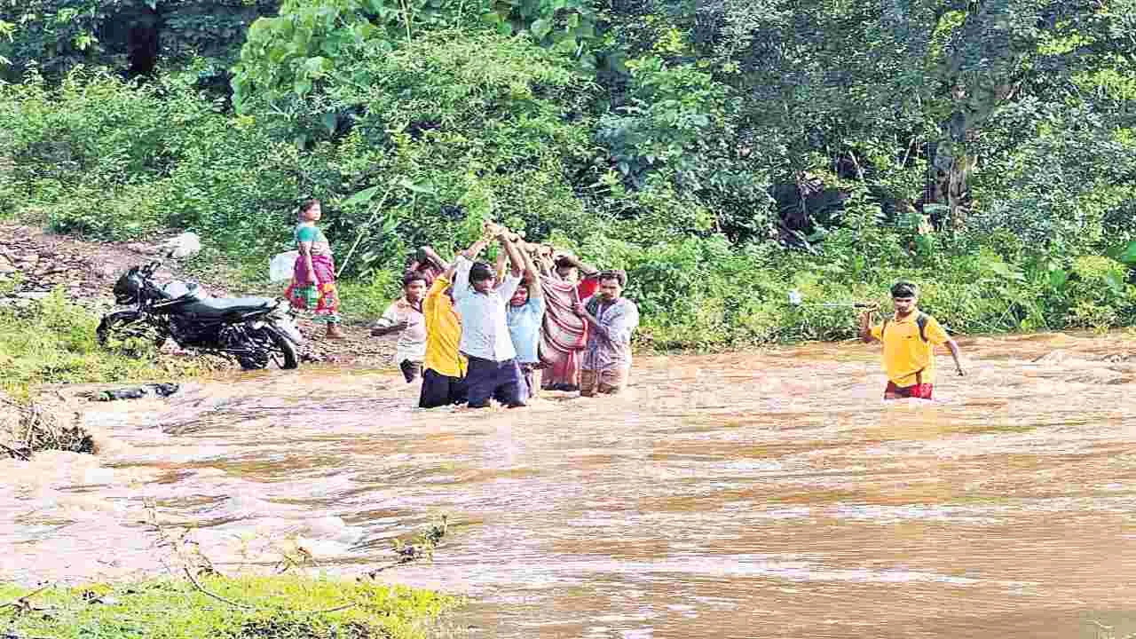 ఉధృతంగా ప్రవహిస్తున్న గెడ్డ దాటి ఆస్పత్రికి తరలింపు