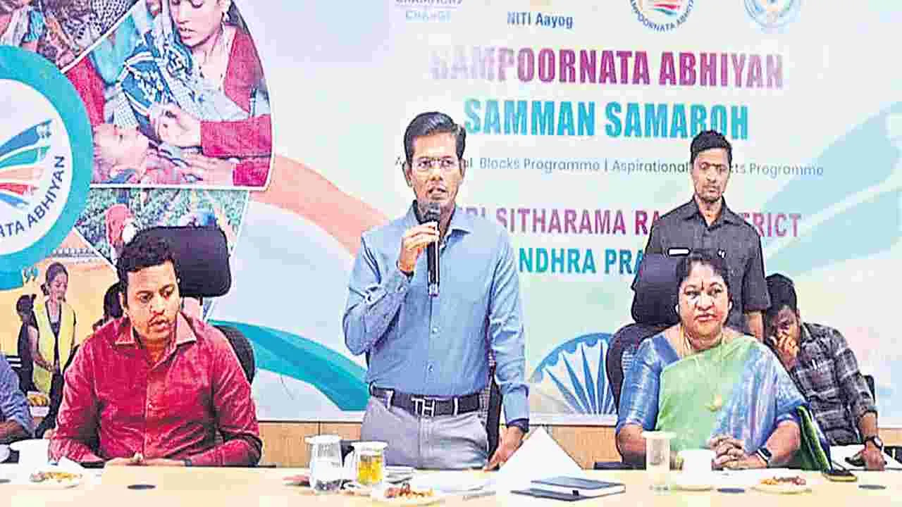 పాడేరు, ఆగస్టు 13(ఆంధ్రజ్యోతి): జిల్లాలోని రైతు ఉత్పత్తిదారు సంఘాలు ఆర్థికంగా ఎదగాలని, అందుకు అధికారులు కృషి చేయాలని కలెక్టర్ ఏఎస్ దినేశ్కుమార్ అన్నారు. స్థానిక కాఫీ హౌస్లో బుధవారం నిర్వహించిన ‘సంపూర్ణ అభియాన్ సమ్మాన్ సమారో’ కార్యక్రమంలో ఆయన ముఖ్య అతిథిగా పాల్గొని మాట్లాడారు. ముఖ్యంగా రైతు ఉత్పత్తిదారులంతా గ్రూప్లుగా తయారు కావాలని, ఆయా గ్రూప్లకు వ్యవసాయ రుణాలు అందించాలని కలెక్టర్ సూచించారు. జిల్లాలోని గంగవరం, వై.రామవరం, మారేడుమిల్లి మండలాల్లో మాత్రమే కేంద్ర ప్రభుత్వ సహాయంతో రైతులను ప్రోత్సహించేందుకు ‘సంపూర్ణ అభియాన్ సమ్మాన్ సమారో’ కార్యక్రమాన్ని అమలు చేస్తున్నామన్నారు. అందుకు గాను నీతిఅయోగ్ నుంచి రూ.27 కోట్లు విడుదలైందని, వాటితో రైతుల అభివృద్ధికి పలు కార్యక్రమాలు చేపడుతున్నారన్నారు. కేంద్ర, రాష్ట్ర ప్రభుత్వాలు మన జిల్లాకు అధిక ప్రాధాన్యం ఇస్తున్నాయని, అందరి సమన్వయంతో దానిని సద్వినియోగం చేసుకోవాలన్నారు. జాయింట్ కలెక్టర్ డాక్టర్ ఎంజే.అభిషేక్గౌడ మాట్లాడుతూ జిల్లాను కేంద్ర ప్రభుత్వం ఆకాంక్ష జిల్లాగా గుర్తించిందన్నారు, దేశవ్యాప్తంగా 114 జిల్లాలను ఆకాంక్ష జిల్లాలుగా గుర్తిస్తే అందులో మన జిల్లా ఉండడం గర్వకారణమన్నారు. ఇందులో భాగంగా జిల్లాలోని గంగవరం, వై.రామవరం, మారేడుమిల్లి మండలాల్లో విద్య, వైద్యం, వ్యవసాయం, అంగన్వాడీ, స్వయం సహాయక సంఘాల అభివృద్ధికి ప్రత్యేక చర్యలు చేపడతారన్నారు. ఆయా శాఖలకు చెందిన అధికారులు ఈ మూడు మండలాల్లో కేంద్ర ఆకాంక్షలకు అనుగుణంగా అభివృద్ధి కార్యక్రమాలు చేపట్టాలన్నారు. మాజీ ఎమ్మెల్యే గిడ్డి ఈశ్వరి మాట్లాడుతూ అందరి సమన్వయంతో ముఖ్యమంత్రి నారా చంద్రబాబునాయుడు పర్యటనను విజయవంతం చేశారని కృతజ్ఞతలు తెలిపారు. జిల్లా అభివృద్ధికి కూటమి ప్రభుత్వం ప్రత్యేక శ్రద్ధ కనబరుస్తుందన్నారు. కార్యక్రమంలో భాగంగా రైతులను ప్రోత్సహించే పది స్టాళ్లను ఏర్పాటు చేశారు. ఆకాంక్ష మండలాల్లోని ప్రగతికి కృషి చేసిన అధికారులకు ప్రశంసాపత్రాలను అందించారు. ఈ కార్యక్రమంలో అసిస్టెంట్ కలెక్టర్ సాహిత్, జిల్లా వైద్య ఆరోగ్యశాఖాధికారి డాక్టర్ విశ్వేశ్వరనాయుడు, డీఆర్డీఏ పీడీ వి.మురళి, ఐసీడీఎస్ పీడీ ఝాన్సీబాయి, గంగవరం, వై.రామవరం, మారేడుమిల్లి మండలాల ఎంపీడీవోలు, రైతు ఉత్పత్తిదారులు పాల్గొన్నారు.