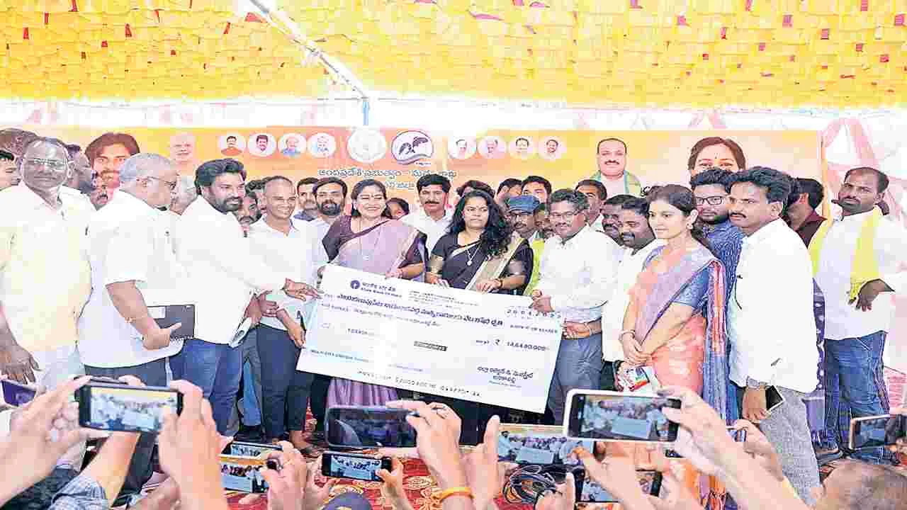 నక్కపల్లి, ఏప్రిల్ 26 (ఆంధ్రజ్యోతి): నిత్యం కడలి కెరటాలపై చేపల వేట సాగించే మత్స్యకారులు రియల్ హీరోలని, వారు ఎటువంటి కల్మషం లేని వారని హోం మంత్రి వంగలపూడి అనిత అన్నారు. శనివారం నక్కపల్లిలో కలెక్టర్ విజయ్కృష్ణన్తో కలిసి జిల్లాలో 12,644 మందికి పైగా మత్స్యకారులకు రాష్ట్ర ప్రభుత్వం మంజూరు చేసిన రూ.25,28,80,000 వేట నిషేధ పరిహారం చెక్కును ఆమె పంపిణీ చేశారు. ఈ సందర్భంగా హోం మంత్రి మాట్లాడుతూ 2014లో టీడీపీ ప్రభుత్వ హయాంలో వేట నిషేధ పరిహారం రూ.4 వేలు ఇచ్చామని, ఎన్నికల్లో మత్స్యకారులకు ఇచ్చిన హామీ మేరకు ఇప్పుడు దానిని రూ.20 వేలకు పెంచామన్నారు. యాభై ఏళ్ల వయస్సు నిండిన మత్స్యకారులకు పెన్షన్ ఇచ్చిన ఘనత సీఎం చంద్రబాబుకే దక్కుతుందన్నారు. మత్స్యకారులు చేపలు విక్రయించడానికి వీలుగా అడ్డరోడ్డులో షెడ్ నిర్మిస్తామని, మత్స్యకారుల పిల్లల కోసం రెసిడెన్షియల్ హాస్టల్ కూడా ఏర్పాటు చేస్తామని చెప్పారు. తీర ప్రాంతాల్లో పరిశ్రమలు రావడం వల్ల అభివృద్ధి జరుగుతుందని, మత్స్యకార ఓట్లు అధికంగా వున్న పాయకరావుపేట నియోజకవర్గం టీడీపీకి కంచుకోటన్నారు. ఈ కార్యక్రమంలో డివిజన్ స్థాయి అధికారులు, నియోజకవర్గం మత్స్యకార నాయకులు, కూటమి నాయకులు పాల్గొన్నారు.