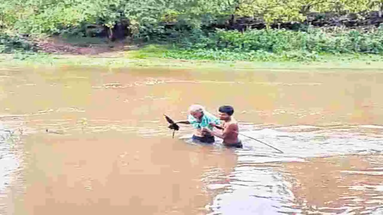 అనంతగిరి: మండలంలో కురుస్తున్న వర్షాలకు లంగుపర్తి పంచాయతీ నేలపాలెం గ్రామ సమీపంలోని గెడ్డ ఉధృతంగా ప్రవహిస్తోంది. ఆ గ్రామానికి చెందిన కొన్నేడి గాసన్న, అతని కుమారుడు పండన్న అటవీ పట్టాకు సంబంధించిన పనిమీద లంగుపర్తి సచివాలయానికి గురువారం గెడ్డను దాటుకుని వెళ్లారు. అయితే తిరుగు ప్రయాణంలో గెడ్డ ఉధృతి పెరగడంతో ప్రాణాలకు తెగించి గెడ్డ దాటి ఇంటికి చేరారు.