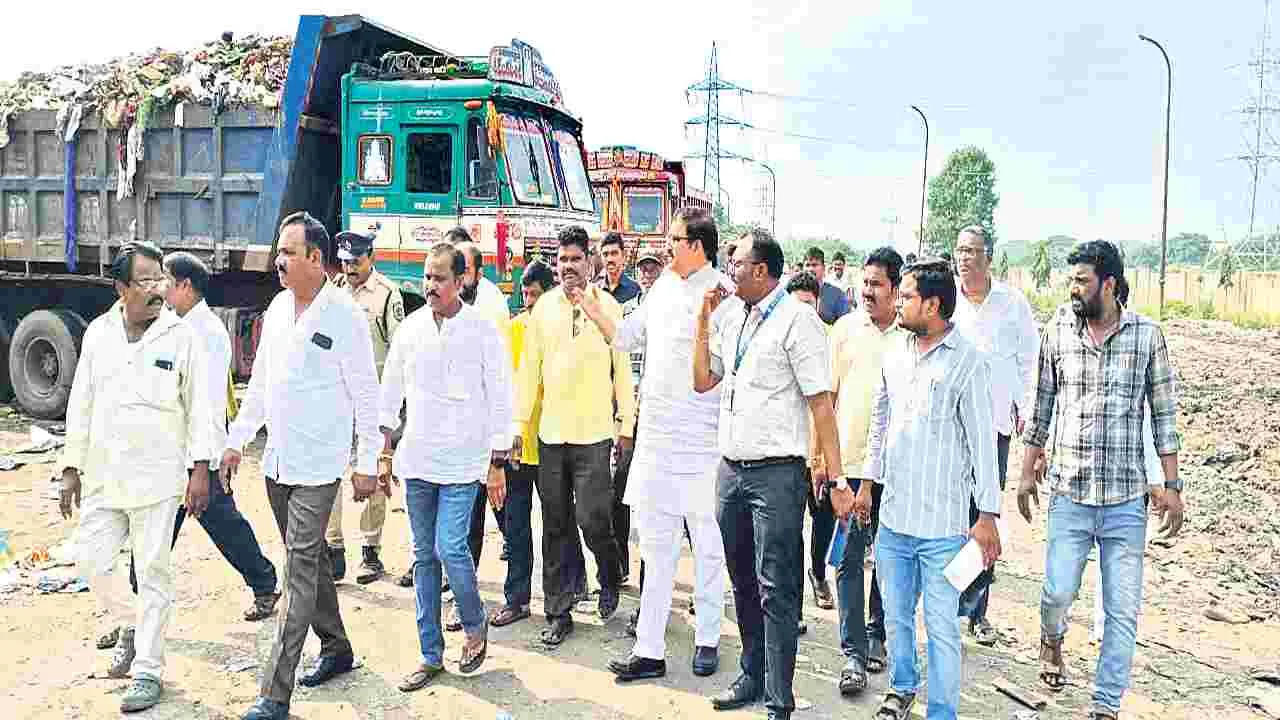 డంపింగ్ యార్డు పరిశీలనకు వెళ్లిన స్వచ్ఛఆంధ్ర కార్పొరేషన్ చైర్మన్ ఎదుట అధికారుల ప్రతిపాదన