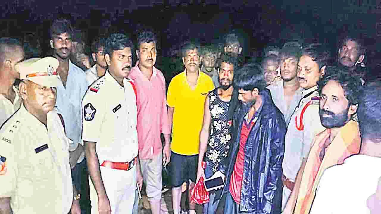 - రోప్ సహాయంతో సురక్షితంగా తీసుకువచ్చిన పోలీసులు, వలంటీర్లు