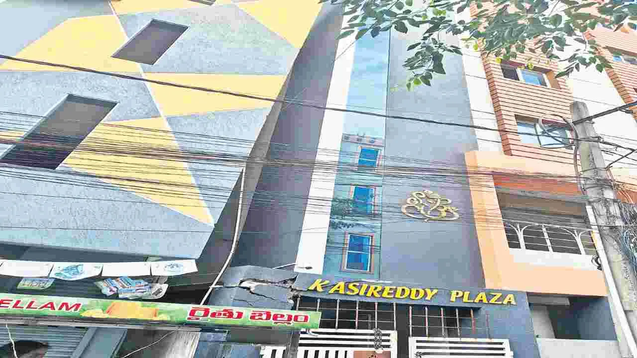 వన్టౌన్లోని వెలంపేట పోస్టాఫీస్కు కూతవేటు దూరంలో గల పువ్వల వీధిలో బుధవారం రాత్రి ఐదు అంతస్థుల భవనం పక్కకు ఒరిగింది. దాంతో అందులో నివసిస్తున్న కుటుంబాలవారు, స్థానికులు భీతిల్లారు. జీవీఎంసీ అధికారులకు, పోలీసులకు సమాచారం అందించడంతో వారంతా హుటాహుటిన అక్కడకు చేరుకున్నారు. ఆ భవంతిలో నివాసం ఉంటున్న వారిని అధికారులు వెంటనే ఖాళీ చేయించారు. రెండేళ్ల క్రితం నిర్మించిన ఈ జి+5 బిల్డింగ్ (కశిరెడ్డి ప్లాజా)లో పది కుటుంబాలవారు నివాసం ఉంటున్నారు. ఆ పక్కనే మూడేళ్ల క్రితం మరో భవంతి (ధరణి ఫంక్షన్ హాల్) నిర్మించారు. ఈ రెండూ అనుమతులకంటే ఎక్కువ అంతస్థులు నిర్మించారు. కొద్దిరోజుల క్రితం కశిరెడ్డి ప్లాజా బిల్డింగ్ కుడి వైపున ఉన్న ఫంక్షన్ హాల్ బిల్డింగ్ పైకి వాలింది. ఇటీవల వర్షాలు కురవడంతో మరింతగా ఒరిగిపోయింది. భవనం పిల్లర్లు బీటలు వారాయి. దీనిని గమనించిన స్థానికులు ఫిర్యాదు చేయడంతో బుధవారం రాత్రి జీవీఎంసీ అధికారులు, పోలీసులు, దక్షిణ శాసనసభ్యుడు వంశీకృష్ణ శ్రీనివాస్తో అక్కడకు చేరుకున్నారు. పది కుటుంబాల వారిని తక్షణమే ఖాళీ చేయాలని ఆదేశించారు. బిల్డింగ్ యజమానులకు జీవీఎంసీ అధికారులు నోటీసులు జారీచేశారు. పక్కనే ఉన్న భరణి ఫంక్షన్ హాల్ కూడా కొద్దిగా పక్కకు ఒరిగినట్టు అధికారులు గుర్తించారు. కశిరెడ్డి బిల్డింగ్ యజమాని జి+2 అనుమతులు తీసుకొని జీ+5 నిర్మాణం చేపట్టారు. ధరణి ఫంక్షన్ హాల్ కూడా జీ+2 అనుమతులు తీసుకొని జీ+3 నిర్మాణం చేపట్టినట్టు అధికారులు గుర్తించారు.