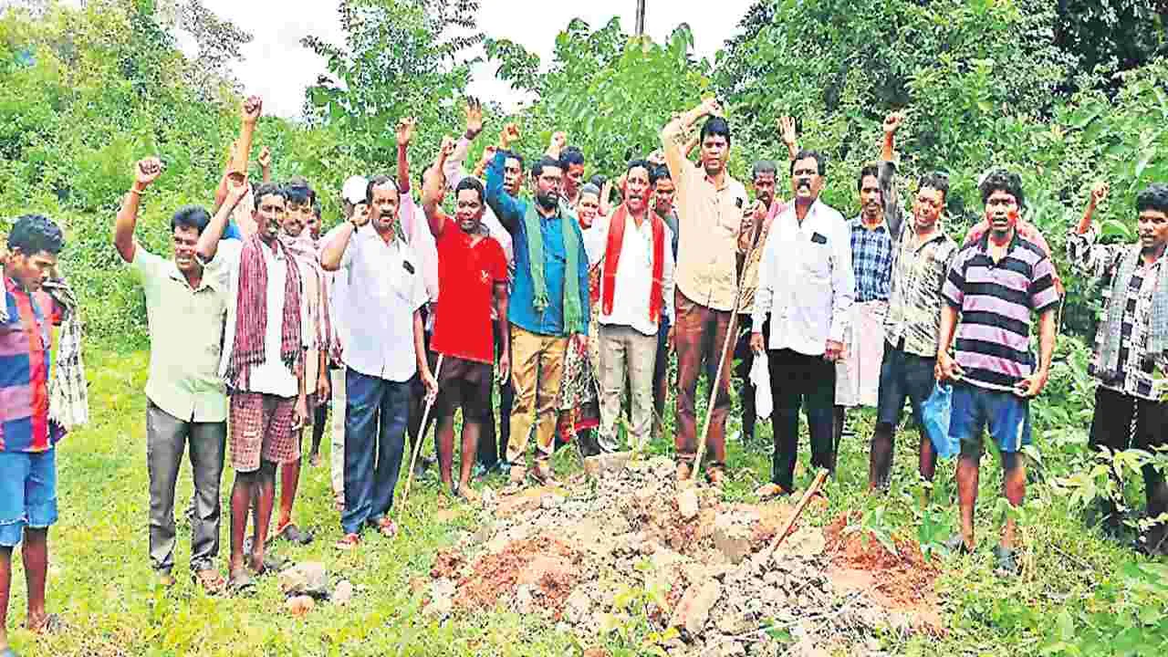 బురదగెడ్డ సమీపంలో అఖిల పక్ష నాయకుల ఆందోళన