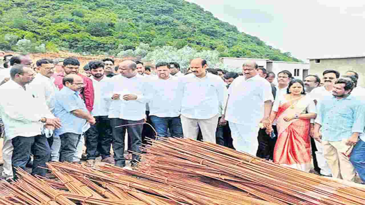 సబ్బవరం, జూన్ 27 (ఆంధ్రజ్యోతి) : రాష్ట్ర గృహ నిర్మాణ, సమాచార శాఖల మంత్రి కొలుసు పార్థసారథి శుక్రవారం మండలంలోని పైడివాడఅగ్రహారంలో ఎన్టీఆర్ గృహ నిర్మాణ లే-అవుట్ను, నిర్మించిన ఇళ్లను పరిశీలించారు. వినియోగిస్తున్న మెటీరియల్, నిర్మాణ పనుల్లో నాణ్యతను పరిశీలించి అసంతృప్తి వ్యక్తం చేశారు. నాణ్యత లేని మెటీరియల్ను వినియోగించవద్దని గృహనిర్మాణ శాఖ అధికారులను ఆదేశించారు. అనంతరం ఇళ్ల లబ్ధిదారులతో ఏర్పాటు చేసిన సమావేశంలో మంత్రి మాట్లాడుతూ, గత ప్రభుత్వ నిర్వాకం కారణంగా ఇళ్ల నిర్మాణాల్లో నాణ్యత లోపించిందని ఆరోపించారు. ఇళ్ల నిర్మాణంలో ఒక పద్ధతి పాటించకుండా ఇష్టానుసారం పనులు చేపట్టి, పూర్తి చేయకుండానే నిధులు డ్రా చేసుకున్నారని విమర్శించారు. లేఅవుట్ల అభివృద్ధి, ఇళ్ల నిర్మాణాల్లో జరిగిన అవకతవకపై విచారణ చేయిస్తామన్నారు. ఇక్కడి లేఅవుట్లలో మిగిలి ప్లాట్లను స్థానిక లబ్ధిదారులకు పంపిణీ చేస్తామని మంత్రి హామీ ఇచ్చారు. ఎమ్మెల్యే పంచకర్ల రమేశ్బాబు మాట్లాడుతూ, పేదలకు ఇళ్ల స్థలాల కోసం గత ప్రభుత్వ హయాంలో చేపట్టిన భూ సేకరణలో అవకతవకలు జరిగాయని ఆరోపించారు. ఇళ్లు నిర్మించకుండానే బిల్లులు డ్రా చేసిన కాంట్రాక్టర్పై చర్యలు తీసుకోవాలని మంత్రిని కోరారు. ఈ కార్యక్రమంలో టీడీపీ పెందుర్తి నియోజకవర్గం ఇన్చార్జి గండి బాబ్జీ, రాష్ట్ర గృహనిర్మాణ సంస్థ చైర్మన్ బత్తుల తాతయ్యబాబు, హౌసింగ్ పీడీ సత్తిబాబు, సీఈ కృష్ణయ్య, ఈఈ శ్రీనివాసరావు, డీఈఈ సూర్యారావు, అధికారులు, కూటమి నేతలు పాల్గొన్నారు.