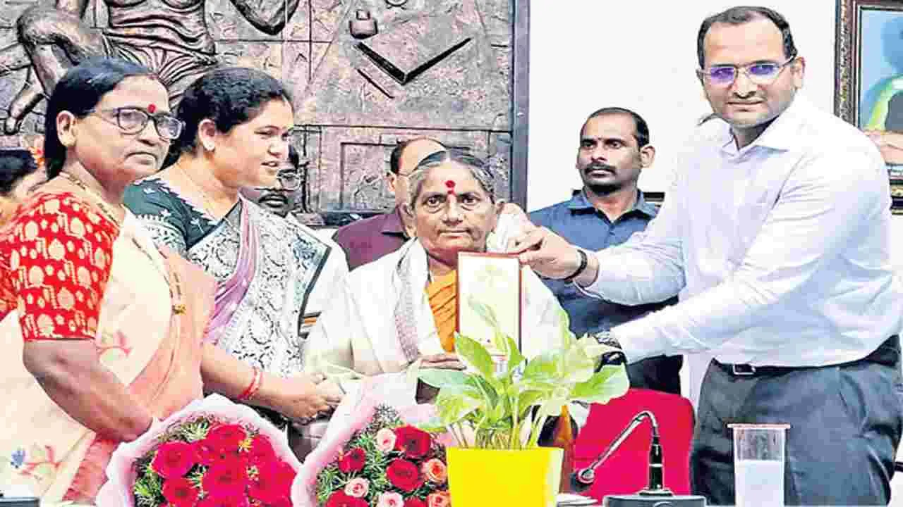 విశాఖ కలెక్టర్ నుంచి పురస్కారం అందుకున్న సర్పంచ్ బుల్లెమ్మ
