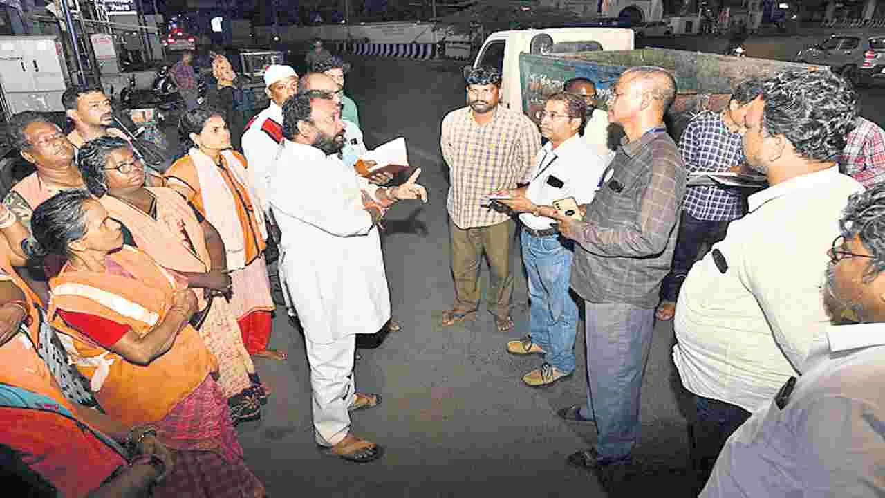 నగరాన్ని నిత్యం పరిశుభ్రంగా ఉంచేందుకుగాను రాత్రి పారిశుధ్య కార్మికుల పనితీరును మెరుగుపరచడంపై జీవీఎంసీ ప్రజారోగ్య అధికారులు ప్రత్యేకదృష్టి సారించాలని మేయర్ పీలా శ్రీనివాసరావు ఆదేశించారు. శుక్రవారం రాత్రి ఆయన ఆర్కే బీచ్, జగదాంబ జంక్షన్ పరిసరాల్లో రాత్రిపూట చేపడుతున్న పారిశుధ్య పనులను పరిశీలించారు. మేయర్ ముందుగా ఆర్కే బీచ్ వద్ద ఉన్న పారిశుధ్య కార్మికుల హాజరుపట్టికను తనిఖీ చేసి...రోజూ కార్మికులు ఎన్ని గంటలకు హాజరవుతున్నారని కాంట్రాక్టర్ను ఆరా తీశారు. పారిశుధ్య కార్మికులతో మాట్లాడుతూ వారికి సరఫరా చేసిన చీపుళ్లను తనిఖీ చేసి నాణ్యత బాగుండలేదని, వాటిని మార్చాలని, ఇంకా కార్మికులకు అవసరమైన డస్ట్ బిన్లు, తోపుడుబండ్లు సమకూర్చాలని సహాయ వైద్యాధికారి డాక్టర్ కృష్ణంరాజును ఆదేశించారు. బీచ్లో ప్రతి దుకాణం దగ్గర డస్ట్ బిన్ తప్పకుండా ఉండాలని, అందుకు సహకరించని వారి షాపులను తొలగించాలని సూచించారు. బీచ్ కాలుష్యానికి గురికాకుండా సందర్శకులకు, వ్యాపారస్తులకు అవగాహన కల్పించేందుకు ప్రత్యేక డ్రైవ్ చేపట్టాలన్నారు. అనంతరం జగదాంబ జంక్షన్లో పనులు పరిశీలించారు. కొన్ని షాపుల వద్ద అధికంగా వ్యర్థాలు రోడ్లపై వేస్తున్నారని ఈ సందర్భంగా పారిశుధ్య కార్మికులు కొందరు మేయర్ దృష్టికి తీసుకువచ్చారు. అటువంటి దుకాణాలు, షోరూమ్స్ వద్ద ప్రత్యేకంగా డస్ట్ బిన్స్ వారే ఏర్పాటుచేసుకుని జీవీఎంసీ వాహనాలకు రోజూ అందించేలా నోటీసులు జారీచేయాలని అధికారులకు సూచించారు. రాత్రి పారిశుధ్య పనులలో ఎటువంటి అలసత్వం, లోపాలు లేకుండా నిత్యం విధులు నిర్వహించేలా చర్యలు చేపట్టాలని సహాయ వైద్యాధికారి డాక్టర్ సునీల్కుమార్ను మేయర్ ఆదేశించారు.
