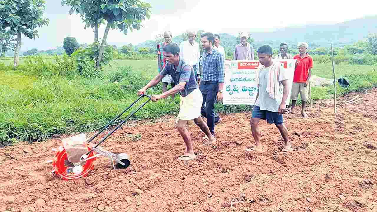 ఉమ్మడి విశాఖపట్నం జిల్లాలో ఖరీఫ్, రబీ సీజన్లో వేరుశనగ పంటను సాగు చేస్తుంటారు. ఖరీఫ్లో ఎక్కువగా పచ్చి కాయలను (ఉడకబెట్టడానికి) విక్రయించడానికి రైతులు ప్రాధాన్యం ఇస్తున్నారు. రబీలో వాణిజ్య సరళిలో..అంటే ఎండుకాయలుగా అమ్ముతుంటారు. ఉమ్మడి జిల్లాలో రబీ సీజన్లో సుమారు పది వేల ఎకరాల్లో వేరుశనగ సాగవుతున్నట్టు వ్యవసాయ శాఖ అధికారుల అంచనా. పొలం దున్నడం నుంచి పంట కోత వరకు రైతులు మనుషులు, పశువుల సాయంతోనే వేరుశనగను పండిస్తుంటారు. దీనివల్ల ఖర్చులు అధికం అవుతున్నాయి. వేరుశనగ సాగులో యంత్రాలను వినియోగిస్తే ఖర్చులు, సమయం ఆదా అవుతాయి. పొలం దున్నడానికి, అంతరకృషి వంటి పనులకు ఇప్పటికే యంత్రాలు అందుబాటులోకి వచ్చిన విషయ తెలిసిందే. ఇప్పుడు విత్తనాలు వేయడానికి కూడా యంత్రాలు వచ్చాయి.