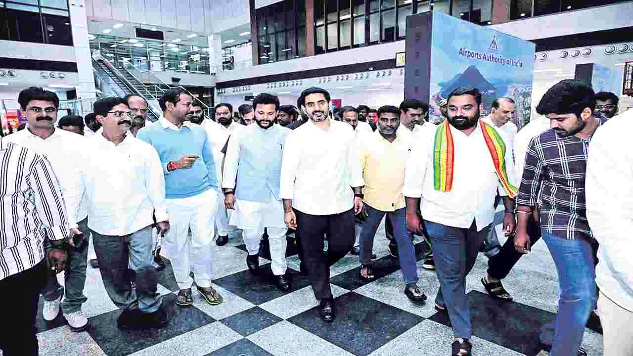 రాష్ట్ర ఐటీ, మానవ వనరుల అభివృద్ధి శాఖల మంత్రి నారా లోకేశ్ సోమవారం అర్ధరాత్రి నగరానికి చేరుకున్నారు. ఆయనకు విమానాశ్రయంలో పార్టీ రాష్ట్ర అధ్యక్షుడు, ఎమ్మెల్యే పల్లా శ్రీనివాసరావు, పార్టీ జిల్లా అధ్యక్షుడు గండి బాబ్జీ, మాజీ ఎమ్మెల్యే బుద్ధ నాగజగదీశ్వరరావు, తదితరులు స్వాగతం పలికారు. మంత్రి ఎయిర్పోర్టు నుంచి నగరంలోని పార్టీ కార్యాలయానికి వెళ్లి బస చేశారు. మంగళవారం రుషికొండలోని రాడిసిన్ బ్లూ హోటల్లో జరిగే కార్యక్రమంలో జీఎంఆర్, మాన్సాస్ ఏవియేషన్ ఎడ్యుకేషన్ సంస్థను ప్రారంభిస్తారు. ఈ కార్యక్రమంలో కేంద్ర పౌర విమానయాన శాఖా మంత్రి కింజరాపు రామ్మోహన్నాయుడు పాల్గొంటారు. అనంతరం మంత్రి లోకేశ్ 1.45 గంటలకు బయలుదేరి రెండు గంటలకు ఎయిర్పోర్టుకు చేరుకుని విజయవాడ వెళతారు.