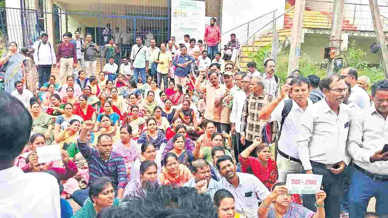 అధికారుల తీరుకు నిరసనగా డీఈవో కార్యాలయం ఎదుట ఆందోళన
