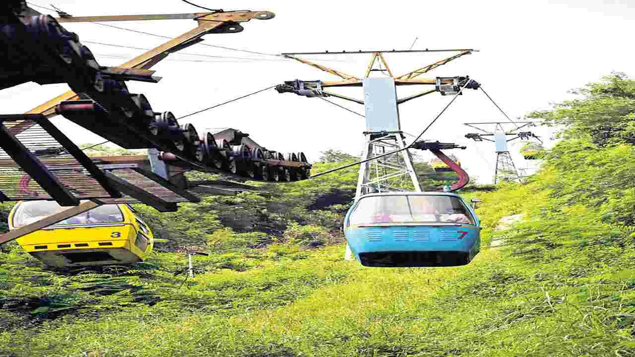 తెన్నేటి పార్కు నుంచి రోప్వే పెట్టాలని అనుకున్నాం. అయితే ఇందులో భాగంగా చేసిన లూజ్ గ్రావిటీ రైడ్ లాభదాయకం కాదనే అభిప్రాయం వ్యక్తమైంది. దానిని తొలగించి, కేవలం రోప్వే ఒక్కటే తెలుగు మ్యూజియం వరకూ వేయాలని అనుకుంటున్నారు. వ్యయం కూడా రూ.60 కోట్లు కావడంతో ఎవరూ ముందుకు రావడం లేదు. దానిని కూడా తగ్గించి మళ్లీ రిక్వెస్ట్ ఫర్ ప్రపోజల్ పెట్టాలని ఇంజనీరింగ్ అధికారులకు సూచించాము.