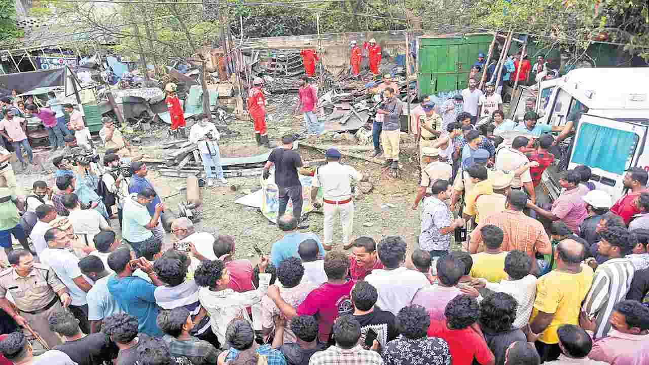 కాగా, పేలుడు జరిగిన ప్రాంతంలోకి వెళ్లేందుకు కొందరు ప్రయత్నించడంతో వన్టౌన్ సీఐ జీడీబాబు ప్రత్యేక సిబ్బందిని నియమించి నియంత్రించారు. అగ్నిమాపక సిబ్బంది పేలుడు జరిగిన ప్రాంతంలో ఇంకా ఏమైనా సిలిండర్లు పేలే అవకాశం ఉందేమోనని పరిశీలించారు. వెల్డింగ్ దుకాణంలో మూడు ఎల్పీజీ సిలిండర్లతోపాటు రెండు ఆక్సిజన్ సిలిండర్లు ఉన్నాయి. ఇంకేమైనా పేలుడుకు కారణమైందా? అనే కోణంలో పోలీసులు, అగ్నిమాపక శాఖ అధికారులు దర్యాప్తుచేస్తున్నారు.