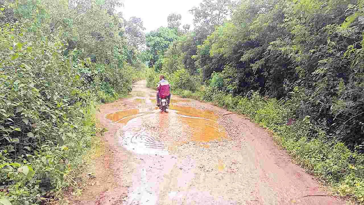 చింపతల్లి, జూలై 13 (ఆంధ్రజ్యోతి): చింతపల్లి-నర్సీపట్నం ప్రధాన రహదారి పెద్దగెడ్డ నుంచికొండవంచుల వరకు గతంలో మెటల్ రోడ్డు నిర్మించారు. దీనిని తారు రోడ్డు నిర్మాణానికి 2018వ సంవత్సరంలో టీడీపీ ప్రభుత్వం రూ. 1.75 కోట్లు మంజూరు చేసింది. దీంతో నిర్మాణ బాధ్యతలు పొందిన కాంట్రాక్టర్ రహదారి నిర్మాణాలకు అవసరమైన ఎర్తువర్క్ పనులు కొంత వరకు చేశారు. 2019లో అధికారంలోకి వచ్చిన వైసీపీ ప్రభుత్వం 25 శాతం పనులు పూర్తికాలేదని ఈ టెండర్ని రద్దు చేసింది. దీంతో ఈ రహదారి నిర్మాణాలు మరుగునపడిపోయాయి. ఐదేళ్లపాటు ఆదివాసీలు రహదారి నిర్మాణం కోసం పలు మార్లు వైసీపీ పాలకులు దృష్టికి తీసుకు వెళ్లినప్పటికీ ఏ ఒక్కరూ పట్టించుకోలేదు. ఈ ఏడాది కురిసిన వర్షాలకు ఈ మార్గం మరింత అధ్వానంగా తయారైంది. దీంతో రాకపోకలు సాగించేందుకు గిరిజనులు అవస్థలు పడుతున్నారు. ఈ రహదారి 24 గ్రామాల గిరిజనులకు ఆధారం. ప్రతి రోజూ ఆదివాసీలు వివిధ పనులు నిమిత్తం మండల కేంద్రానికి వస్తుంటారు. ప్రస్తుతం రోడ్డు అధ్వానంగా ఉండడంతో వ్యవసాయ ఉత్పత్తులు సంతలకు తరలించేందుకు ఆదివాసీలు పెద్ద సాహసమే చేయాల్సి వస్తున్నది. వర్షాకాలం వాహనాలు బురదలో కూరుకుపోతున్నాయి. ఆటోలు, ద్విచక్రవాహనాలు ఈమార్గంపై ప్రయాణించడం వల్ల తరచూ మరమ్మతులకు గురవుతున్నాయి.