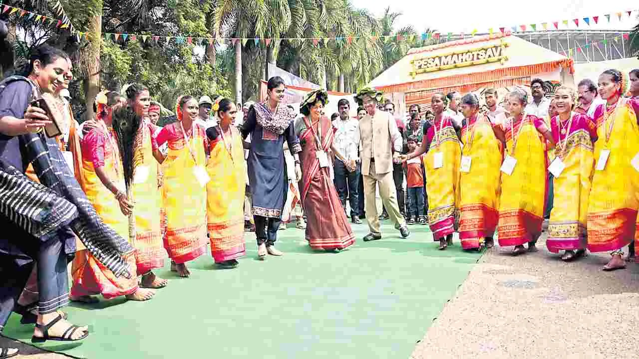నగరంలోని అక్కయ్యపాలెంలో గల పోర్టు స్టేడియంలో ‘పెసా’ మహోత్సవం మంగళవారం అట్టహాసంగా ప్రారంభమైంది. కేంద్ర పంచాయతీరాజ్ జాయింట్ సెక్రటరీ ముక్తా శేఖర్, రాష్ట్ర పంచాయతీరాజ్, గ్రామీణాభివృద్ధి శాఖ కమిషనర్ కృష్ణతేజ, ఆర్చరీ క్రీడాకారిణి, అర్జున అవార్డు గ్రహీత జ్యోతి సురేఖ ఈ ఉత్సవ్ను ప్రారంభించారు. ముందుగా వివిధ రాష్ర్టాల నుంచి వచ్చిన గిరిజనులు ఏర్పాటుచేసిన 68 స్టాళ్లను లాంఛనంగా ప్రారంభించారు. ప్రదర్శనలో ఉంచిన గిరిజన ఉత్పత్తులను, సంప్రదాయ వంటకాలను పరిశీలించారు. హిమాచల్ప్రదేశ్, మహారాష్ట్ర, రాజస్థాన్, గుజరాత్, మధ్యప్రదేశ్, ఒడిశా, ఛత్తీ్సగఢ్, జార్ఖండ్, తెలంగాణ, ఆంధ్రప్రదేశ్లకు చెందిన గిరిజన మహిళలు కొండపల్లి, ఏటికొప్పాక బొమ్మలు, మంగళగిరి, వెంకటగిరి చీరలు, చేనేత ఉత్పత్తులు, సంప్రదాయ ఆహార ఉత్పత్తులు ప్రదర్శనలో ఉంచారు. ఈ ఉత్సవం బుధవారంతో ముగుస్తుంది.