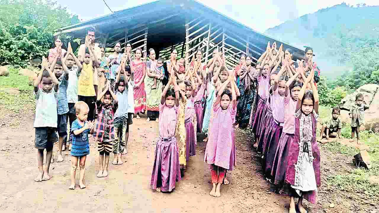 జాజిలబంధ గ్రామంలో చిన్నారుల నిరసన