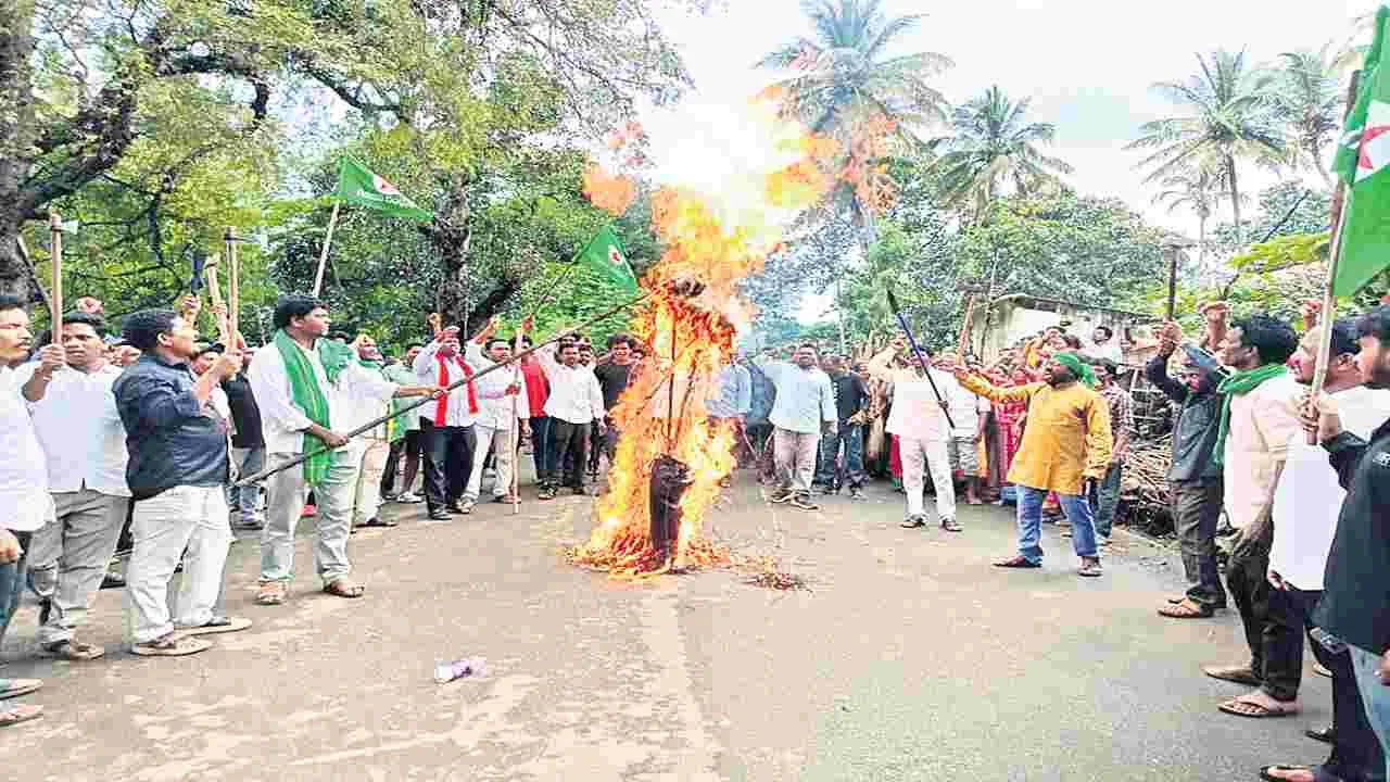 అరకులోయ, సెప్టెంబరు 8 (ఆంధ్రజ్యోతి): అరకులోయ, అనంతగిరి, హుకుంపేట మండలాల పరిధిలో హైడ్రో పవర్ ప్రాజెక్టుల ఏర్పాటుకు ఇచ్చిన అనుమతులను కేంద్ర, రాష్ట్ర ప్రభుత్వాలు రద్దు చేయాలని గిరిజన సంఘాల నాయకులు డిమాండ్ చేశారు. హైడ్రో పవర్ ప్రాజెక్టుల ఏర్పాటును వ్యతిరేకిస్తూ సోమవారం అరకులోయ మండలం తొరడంవలస గ్రామం నుంచి లోతేరు వరకు నిరసన ర్యాలీ చేపట్టారు. ఈ సందర్భంగా ఆదివాసీ గిరిజన సంఘం రాష్ట్ర ప్రధాన కార్యదర్శి కిల్లో సురేంద్ర, సీపీఎం జిల్లా కార్యదర్శి పి.అప్పలనర్స, గిరిజన సంఘం జిల్లా ప్రధాన కార్యదర్శి పొద్దు బాలదేవ్లు మాట్లాడుతూ సాగు, అటవీ భూముల జోలికి వస్తే ఊరుకునేది లేదని హెచ్చరించారు. గిరిజనులు సాగు చేసుకునే పంట పొలాలు, కాఫీ తోటలు జల సమాధి అయ్యే ప్రమాదం ఉందన్నారు. అదానీ, నవయుగ కంపెనీలకు అటవీ భూములను ధారాదత్తం చేస్తారా? అని మండిపడ్డారు. అనంతరం అదానీ, నవయుగ కంపెనీల యాజమాన్యాల దిష్టిబొమ్మలను దహనం చేశారు. ఈ కార్యక్రమంలో ఆదివాసీ గిరిజన సంఘం మండల నేతలు టి.కృష్ణారావు, కిల్లో బుజ్జిబాబు, రామారావు, పోరాట కమిటీ కన్వీనర్ కొర్రా స్వామి, గ్రామ పెద్దలు గుబ్బాయి శ్రీరాములు, పెసా కమిటీ సభ్యులు కిల్లో రామన్న, భీమ, అధిక సంఖ్యలో గిరిజనులు పాల్గొన్నారు.