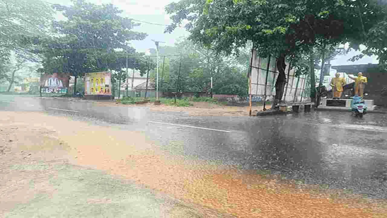 అనకాపల్లి, జూన్ 25 (ఆంధ్రజ్యోతి-న్యూస్ నెట్వర్క్): బంగాళాఖాతంలో నెలకొన్న ఉపరితల ఆవర్తనం ప్రభావంతో జిల్లా వ్యాప్తంగా బుధవారం ముసురు వాతావరణం నెలకొంది. గురువారం నాటికి అల్పపీడనం ఏర్పడుతుందన్న వాతావరణ శాఖ సూచనలతో రానున్న రెండు రోజుల్లో జిల్లాలో వర్షాలు పెరిగే అవకాశం వుంది. గురు, శుక్రవారాల్లో ఉరుములు, పిడుగులతో వర్షాలు కురుస్తాయని వాతావరణ శాఖ తెలిపింది. తీరం వెంబడి బలమైన గాలులు వీస్తున్నందున మత్స్యకారులు సముద్రంలో చేపలవేటకు వెళ్లరాదని హెచ్చరించింది. కాగా బుధవారం జిల్లాలోని అన్ని మండలాల్లో ఆకాశం మేఘావృతమై వాతావరణం చల్లగా వుంది. పలు మండలాల్లో దఫదఫాలుగా మోస్తరు వర్షం కురిసింది. సాయంత్రం తరువాత వర్షం తీవ్రత పెరిగింది. గత రెండు వారాల నుంచి వేడి వాతావరణం, ఉక్కపోతతో ఇబ్బంది పడిన ప్రజలు, వర్షంతో వాతావరణం చల్లబడడంతో ఉపశమనం చెందారు. అనకాపల్లి పట్టణంలో ఉదయం నుంచి సాయంత్రం వరకు తేలికపాటి జల్లులు కురుస్తూనే ఉన్నాయి. పరవాడ, పరిసర ప్రాంతాల్లో ఉదయం నుంచి జల్లులు పడుతున్నాయి. కూరగాయల పంటలకు ఈ వర్షం ఊపిరి పోసిందని రైతులు చెబుతున్నారు. అయితే గ్రామాలకు వెళ్లే మెటల్, మట్టి రోడ్లు చిత్తడిగా తయారై, రాకపోకలకు ప్రజలు ఇబ్బంది పడ్డారు. చోడవరంలో రోజంతా చిరుజల్లులు పడుతూనే వున్నాయి. మాడుగుల మండలంలో ముసురు వాతావరణం నెలకొంది. ఉదయం నుంచి సాయంత్రం వరకు దఫదఫాలుగా జల్లులు పడుతునే ఉన్నాయి. ఉపాధి పనులకు ఆటంకం ఏర్పడింది. ఆకుమడుల్లో వరి విత్తనాలు చల్లడానికి ఈ వర్షం ఉపయోగపడుతుంది. ఇటీవల వేసిన సరుగుడు నాట్లు, కూరగాయ తోటలకు ఈ వర్షం మేలు చేస్తుందని గొలుగొండ మండల రైతులు చెబుతున్నారు. పాయకరావుపేట మండలంలోబుధవారం తెల్లవారుజాము నుంచి రాత్రి వరకు చెదురుమదురుగా వర్షం పడుతున్నది. లోతట్టు ప్రాంతాలు జలమయం అయ్యాయి. అచ్యుతాపురంలో మండలంలో మంగళవారం అర్ధరాత్రి దాటిన తరువాత ప్రారంభమైన వర్షం బుదవారం రాత్రి వరకు కురుస్తునే ఉంది. అమావాస్య కారణంగా సముద్రంలో అలల తాకిడి అధికంగా వుండడంతోపాటు వర్షం కురుస్తుడడంతో పలువురు మత్స్యకారులు చేపల వేటకు వెళ్లలేకపోయారు. కోటవురట్ల మండలంలో మంగళవారం రాత్రి బుధవారం సాయంత్రం వరకు అదపాదడపా వర్షం కురుస్తూనే వుంది. సరుగుడు, నువ్వు, కూరగాయ పంటలకు మేలు చేస్తుందని రైతులు అంటున్నారు. నక్కపల్లి మండలంలోని పలు గ్రామాల్లో మంగళవారం రాత్రి నుంచి బుధవారం రాత్రి వరకు చిరుజల్లులతో వర్షం కురిసింది. సాధారణ జనజీవనానికి అంతరాయం కలిగింది. మట్టి రోడ్డు బురదమయం అయ్యాయి. ఖరీఫ్ వ్యసాయ పనులకు ఈ వర్షం దోహదం చేస్తుందని రైతులు చెబుతున్నారు.