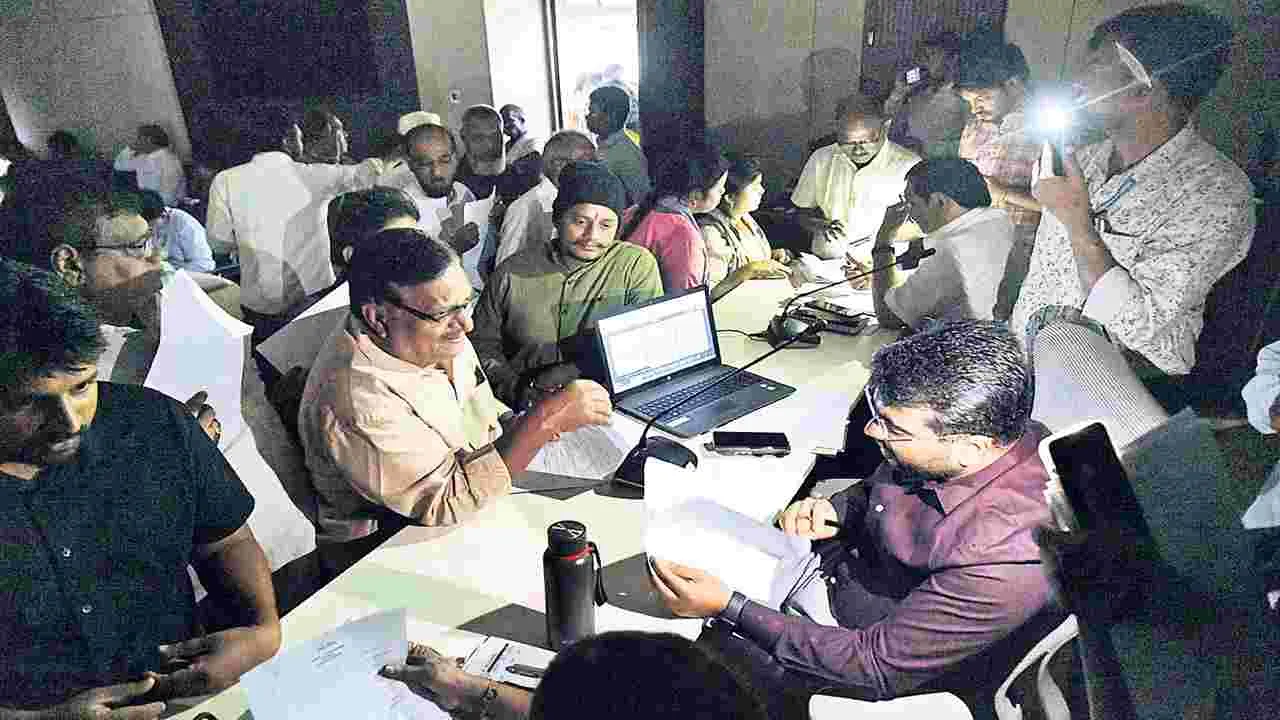 జిల్లా కలెక్టర్ కార్యాలయంలోని సమావేశ మందిరంలో గల ప్యానల్ బోర్డులో కేబుల్ కాలిపోవడంతో సోమవారం మధ్యాహ్నం విద్యుత్ సరఫరా నిలిచిపోయింది. దీంతో ప్రజా ఫిర్యాదుల పరిష్కార వేదికలో జాయింట్ కలెక్టర్ మయూర్ అశోక్, ఇతర అధికారులు సెల్ఫోన్ టార్చ్ వెలుతురులో అర్జీలను స్వీకరించాల్సి వచ్చింది. జేసీ, ఇతర అధికారులు అంతంతమాత్రపు వెలుతురులోనే అర్జీదారులతో మాట్లాడారు. కొంతసేపటి తరువాత విద్యుత్ను పాక్షికంగా పునరుద్ధరించారు. ప్యానల్ బోర్డులో కాలిపోయిన కేబుల్స్ స్థానంలో కొత్తవి ఏర్పాటు ప్రక్రియ రాత్రి ఏడు గంటల సమయంలో పూర్తయ్యింది. అప్పటివరకూ కొన్ని ఛాంబర్లు మినహా ఇతర సెక్షన్లలో విద్యుత్ సరఫరా నిలిచిపోవడంతో పనులకు అంతరాయం ఏర్పడింది. కలెక్టరేట్లో లోడుకు అక్కడ ఉన్న ప్యానల్స్ సామర్థ్యం సరిపోవడం లేదు. భవనంలో విద్యుత్ వినియోగ సామర్థ్యానికి అనుగుణంగా వైరింగ్, ప్యానల్స్ ఏర్పాటుచేయాల్సి ఉందని ఈపీడీసీఎల్ అధికారి ఒకరు అభిప్రాయపడ్డారు.
