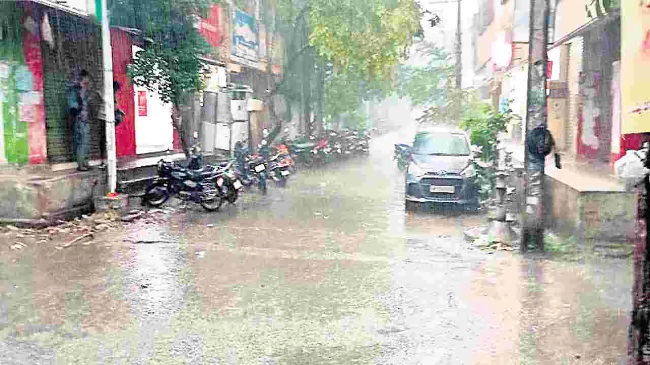 అనకాపల్లి టౌన్: అనకాపల్లి పట్టణంలో శనివారం సాయంత్రం భారీ వర్షం కురిసింది. సాయంత్రం 4.30 గంటలకు దట్టంగా మేఘాలు అలుముకుని ఉరుములు, మెరుపులతో వర్షం కురిసింది. చీకటి వాతావరణం నెలకొనడంతో హెడ్ లైట్లు వేసుకుని వాహనాలు రాకపోకలు సాగించాయి. సుమారు 20 నిమిషాల పాటు వర్షం పడడంతో రహదారులు జలమయమయ్యాయి. విజయరామరాజుపేట అండర్బ్రిడ్జి కింద వర్షపునీరు నిలిచిపోవడంతో రాకపోకలకు అంతరాయం ఏర్పడింది. ఆర్టీసీ కాంప్లెక్స్ ఆవరణలో వర్షపునీరు నిలిచిపోవడంతో కాంప్లెక్స్లోకి వచ్చే ప్రయాణికులు ఇబ్బందులు పడ్డారు.