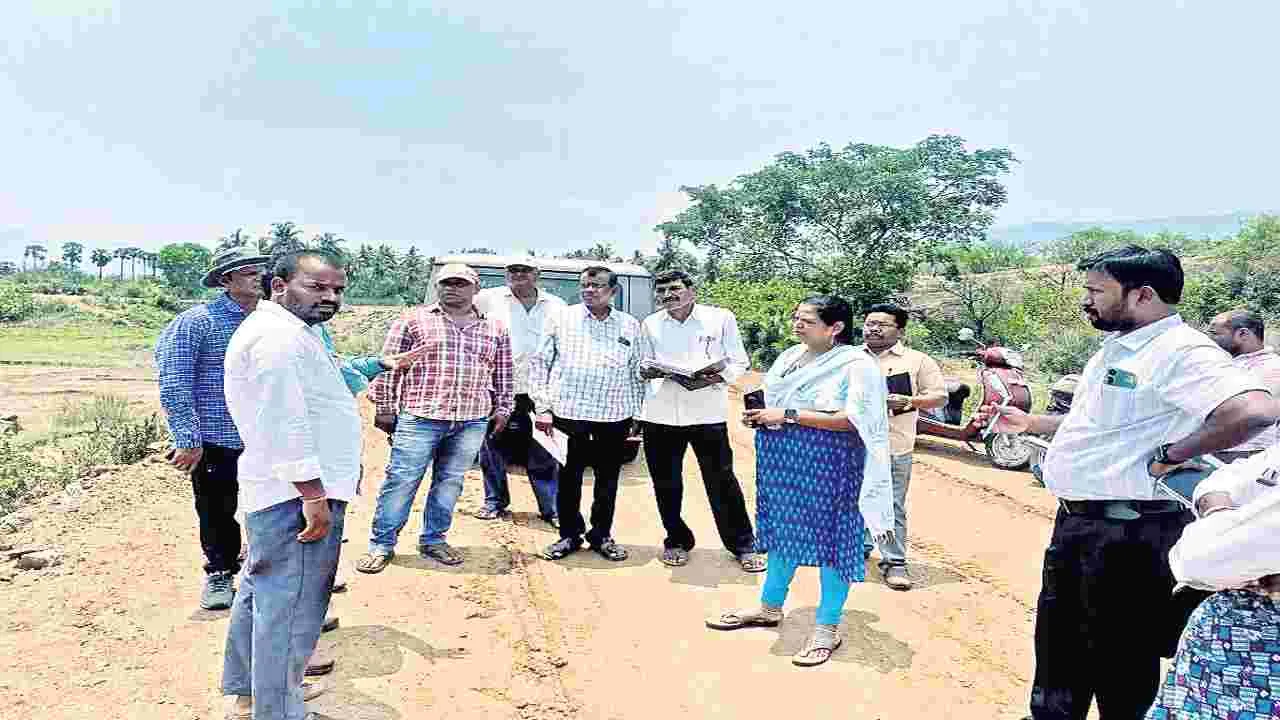 రోలుగుంట, ఏప్రిల్ 18 (ఆంధ్రజ్యోతి): మండలంలోని రాజన్నపేటలో నిబంధనలకు విరుద్ధంగా సాగునీటి చెరువు మధ్యలో నుంచి రోడ్డు వేసిన నల్లరాయి క్వారీ యాజమానికి అధికారులు నోటీసులు జారీ చేశారు. రోడ్డును తొలగించి, చెరువు గర్భాన్ని పూర్వస్థితికి తీసుకురాకపోతే చట్టప్రకారం చర్యలు తీసుకోవాల్సి వస్తుందని హెచ్చరించారు. మండలంలోని రాజన్నపేటలో ఏకా వీర్రాజు అనే వ్యక్తి నల్లరాయి క్వారీ నిర్వహిస్తున్నారు. ఇక్కడి నుంచి భారీ బండరాళ్లను రాంబిల్లి మండలంలో ఏర్పాటు చేస్తున్న నేవల్ ప్రత్యామ్నాయ బేస్ నిర్మాణ పనులకు తరలిస్తున్నారు. అయితే టిప్పర్ లారీలు క్వారీ నుంచి ప్రధాన రహదారికి చేరుకోవడానికి సరైన రోడ్డు లేకపోవడంతో సర్వే నంబరు 57/2లో వున్న భూపతి చెరువు మధ్యలో నుంచి మెటల్, మట్టితో తాత్కాలికంగా రోడ్డు వేశారు. ఈ విషయం తెలుసుకున్న జనసేన పార్టీ చోడవరం నియోజకవర్గం ఇన్చార్జి పీవీఎస్ఎన్ రాజు, పలువురు నాయకులు వచ్చి పరిశీలించారు. అనంతరం జిల్లా కలెక్టర్కు లిఖిత పూర్వక పిర్యాదు చేశారు. కలెక్టర్ ఆదేశాల మేరకు తహసీల్దార్ నాగమ్మ, డీటీ శంకర్రావు, సర్వేయర్లు, మైనింగ్, ఇరిగేషన్ శాఖల అధికారులు ఈ నెల 11వ తేదీన క్షేత్రస్థాయిలో పరిశీలించి సర్వే చేశారు. నిబంధనలకు విరుద్ధంగా చెరువులో నుంచి రోడ్డు నిర్మించినట్టు నిర్ధారించారు. దీనివల్ల చెరువు మనుగడకు ముప్పు వాటిల్లుతుందని, ఆయకట్టుకు నీరు అందక రైతులు ఇబ్బంది పడతారని గుర్తించారు. చెరువులో నుంచి వేసిన రోడ్డును తక్షణమే తొలగించి, చెరువు గర్భాన్ని పూర్వ స్థితికి తీసుకురావాలని ఇరిగేషన్ ఏఈ డి.సూర్యనారాయణ, క్వారీ లీజుదారుడు ఏకా వీర్రాజుకు నోటీసులు జారీ చేశారు. లేని పక్షంలో చట్టపరమైన చర్యలు తీసుకుంటామని హెచ్చరించారు.