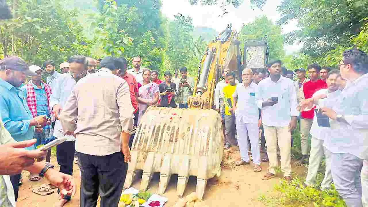 మండలంలోని జీనబాడు, పినకోట, పెదకోట పంచాయతీల పరిధిలో గల బల్లగరువు నుంచి తున్సీబ్ వయా దాయర్తి మీదుగా మడ్రేబ్ వరకు 12 కిలోమీటర్ల తారురోడ్డు నిర్మాణానికి పీఎం జన్మన్ పథకం కింద ప్రభుత్వం ఈ ఏడాది జనవరి నెలలో రూ.11.63 కోట్లతో నిధులు మంజూరు చేసింది. ఏప్రిల్ నెలలో డుంబ్రిగుడ పర్యటనకు వచ్చిన ఉపముఖ్యమంత్రి కొణిదెల పవన్కల్యాణ్ రోడ్డు పనులకు శంకుస్థాపన చేశారు. అయితే రెండు సార్లు టెండర్ పిలిచిన కాంట్రాక్టర్లు ముందుకు రాకపోవడం, ఎమ్మెల్సీ ఎన్నికల కోడ్ నేపథ్యంలో పనులు ప్రారంభంకాలేదు. మూడోసారి టెండర్కు సుమారు 8 మంది కాంట్రాక్టర్లు ముందుకు రావడం, ఈఎన్సీ నుంచి టెండర్ పూర్తిచేసిన అనంతరం అగ్రిమెంట్ వేగవంతం చేయడంలో ఉన్నతాధికారులు ప్రత్యేక చొరవ చూపారు. ఏకేవీఆర్ ఇన్ఫ్రా కంపెనీ రోడ్డు పనులను సొంత చేసుకుని నిర్మాణ పనులను సోమవారం ప్రారంభించింది. సర్పంచ్ సిగరం గణేశ్, ఎంపీటీసీ సభ్యులు శ్రావణి, రామలక్ష్మి, వైస్ ఎంపీపీ బాడం శకుంతల, నాగేశ్వరరావు, రాంబాబు, కాంట్రాక్టర్ కాశీవిశేశ్వరరావు, అధికారుల సమక్షంలో పనులు మొదలయ్యాయి.