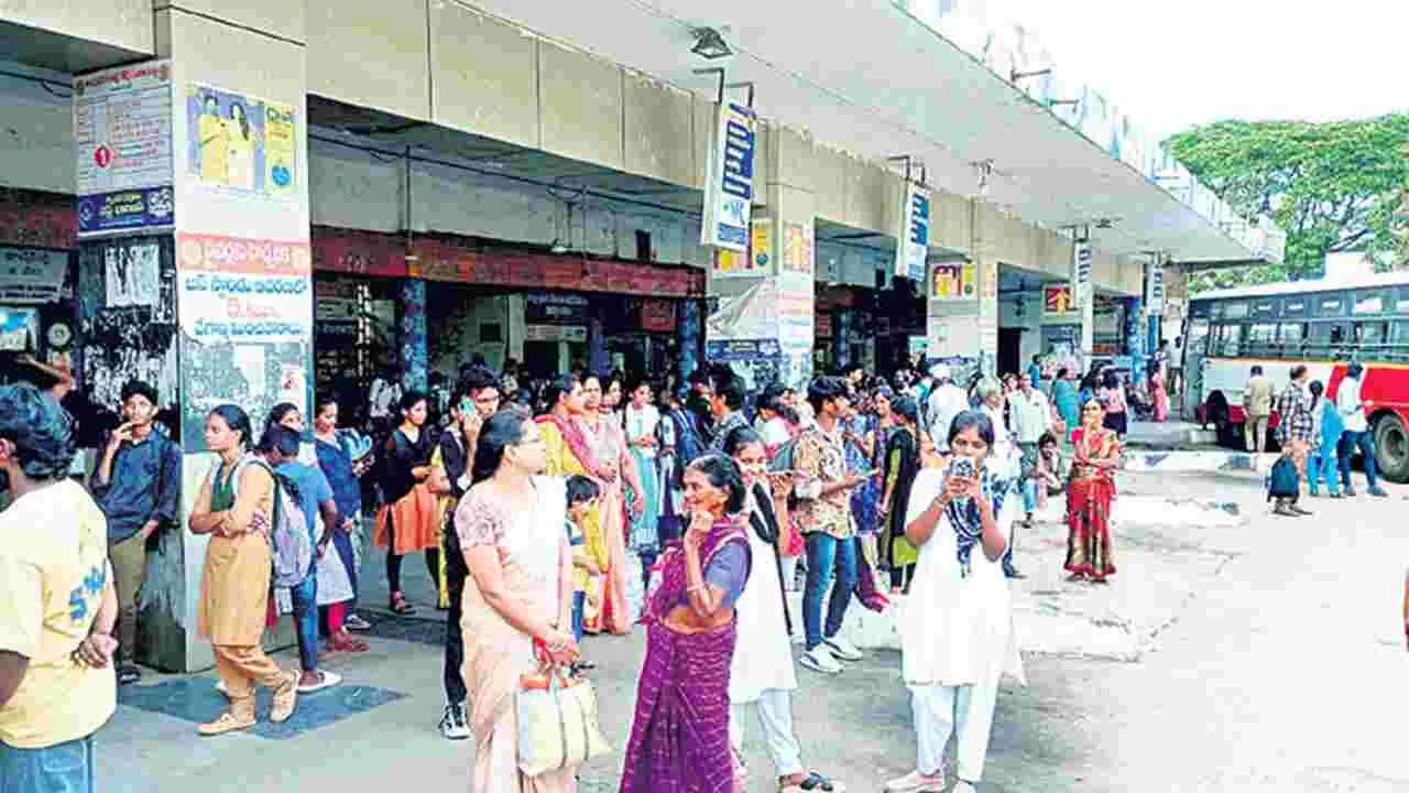 అనకాపల్లి టౌన్, మే 2 (ఆంధ్రజ్యోతి): తమ సమస్యలను పరిష్కరించాలని డిమాండ్ చేస్తూ ప్రజా రవాణా శాఖ (పీటీడీ) అనకాపల్లి డిపో నుంచి బస్సులను ఆపరేట్ చేస్తున్న ఆర్టీసీ అద్దె బస్సుల డ్రైవర్లు శుక్రవారం సమ్మెకు దిగారు. దీంతో 40 బస్సులు నిలిచిపోయి ప్రయాణికులు తీవ్ర ఇబ్బందులు పడ్డారు. అనకాపల్లి డిపోలో అద్దె వాటితోకలిపి మొత్తం 95 బస్సులు వున్నాయి. వీటిలో 25 బస్సులను అమరావతిలో ప్రధాని సభకు ప్రజలను తరలించేందుకు గురువారమే పంపారు. శుక్రవారం అద్దె బస్సుల డ్రైవర్ల సమ్మెతో 40 బస్సులు రోడ్డెక్కలేదు. ఇక మిగిలింది 35 బస్సులే. దీంతో విశాఖపట్నం, విజయనగరం, పాయకరావుపేట, మాడుగుల, చోడవరం, దేవరాపల్లి, నర్సీపట్నం ప్రాంతాలకు వెళ్లే ప్రయాణికులు బస్సుల కోసం కాంప్లెక్స్లో గంటల తరబడి వేచివుండాల్సి వచ్చింది. బస్సు వచ్చిందే తడవుగా ప్రయాణికులు ఒక్కసారిగా ఎగబడుతున్నారు. గమ్యస్థానాలకు త్వరగా చేరుకోవాలన్న ఉద్దేశంతో పలువురు నిల్చుని ప్రయాణించారు. కాగా బస్సుల కొరతతో ప్రయాణికుల ఇక్కట్లపై ఆర్టీసీ ఏడీఎం రవిచంద్రను వివరణ కోరగా.. ప్రయాణికులు ఇబ్బంది పడకుండా ఉండేందుకు నర్సీపట్నం, విశాఖపట్నం, విజయనగరం డిపోల నుంచి 15 బస్సులను రప్పించినట్టు చెప్పారు.