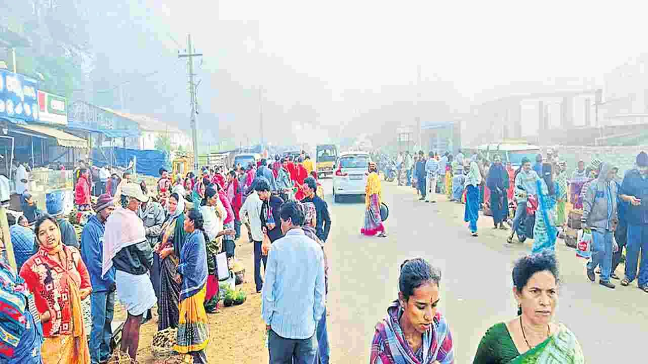 పాడేరులో ప్రతి ఏడాది శీతాకాలంలో తెల్లవారు సంత జరుగుతుంది. అయితే ఈ శుక్రవారం ఉదయం పొగమంచు కురుస్తుండగా సంత జరిగింది.